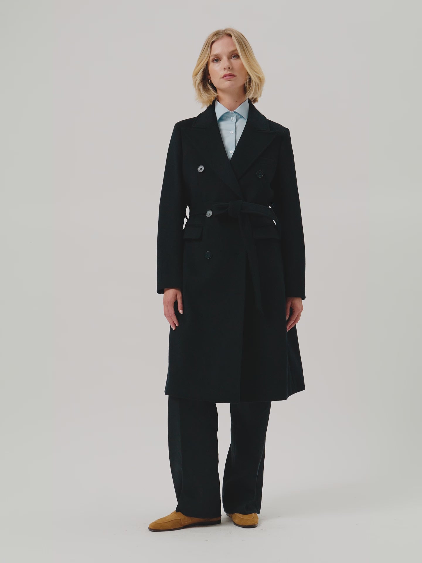 Handmade Overcoat In Wool Blend With Belt