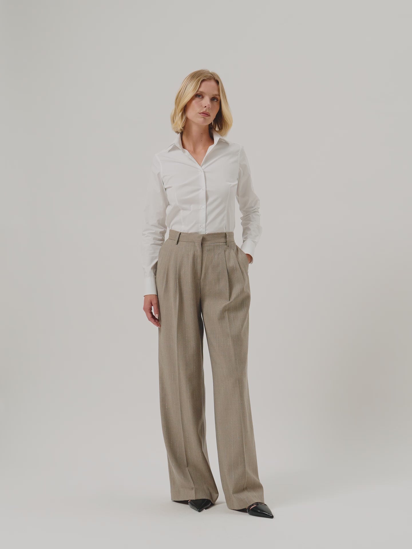 Travel line shirt made of high-quality plain comfort cotton poplin. Fabric made of blended cotton with added polyester and spandex fibres meaning every shirt can offer perfect comfort and an excellent fit, the top-performance yarns guarantee excellent elasticity, breathability, and shine. This slim fit shirt features an open collar and front button-up fastening with personalized buttons, two buttons at the collar stand, personalized collar stays, long sleeves and side gussets. Once you’ve tried it, you’ll never want to take it off.