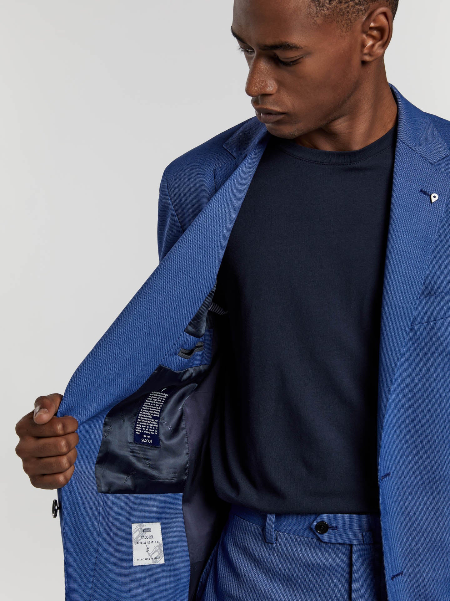 The men's suits from Sacoor Brothers are available with 'Drop 5' and 'Drop 6'. This designation refers to the difference between the blazer size and the trouser size. When ordering a size 46 with 'Drop 5', the trousers will be around size 41, while 'Drop 6' will result in trousers of size 40.