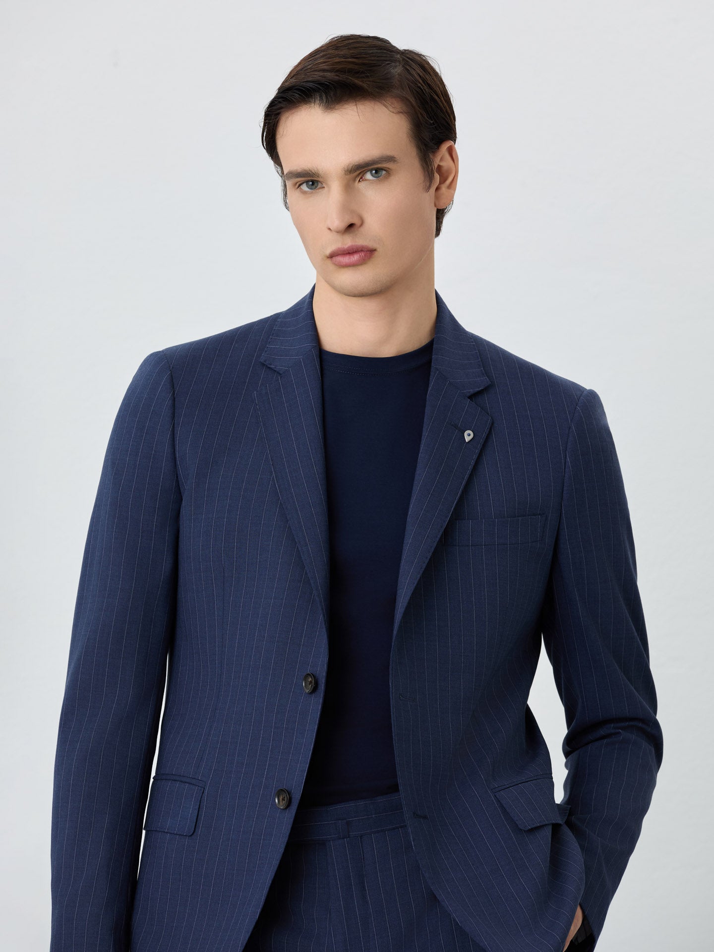 Slim Fit Premium Suit In Super Fine Wool With Stripes
