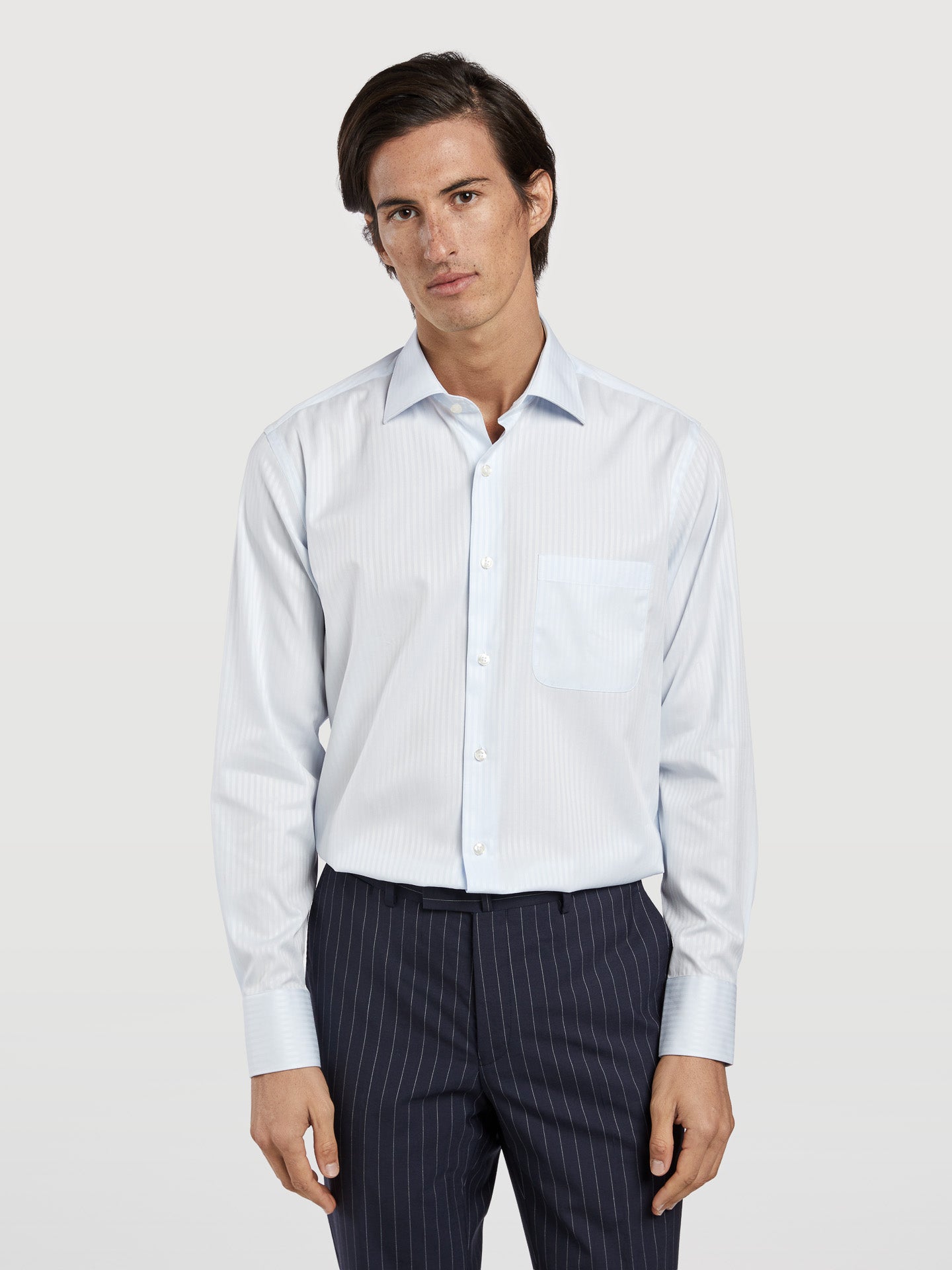 Introducing our Regular Fit Business Striped Structure Formal Shirt, a classic choice for formal occasions. This shirt is made from 100% cotton with a striped structure, offering both comfort and a timeless look. The regular fit, Oxford collar, and front button-up fastening provide a traditional and elegant appearance, while the chest pocket adds functionality. The long sleeves feature single cuffs with two buttons, allowing you to customize your style. Side gussets in self-fabric are a thoughtful detail that reflects our commitment to quality. Impeccable workmanship, the finest materials, and a passion for excellence are the cornerstones of this business shirt. It's the perfect choice for any formal event, ensuring you look clean-cut, elegant, and understated while maintaining the highest level of comfort.