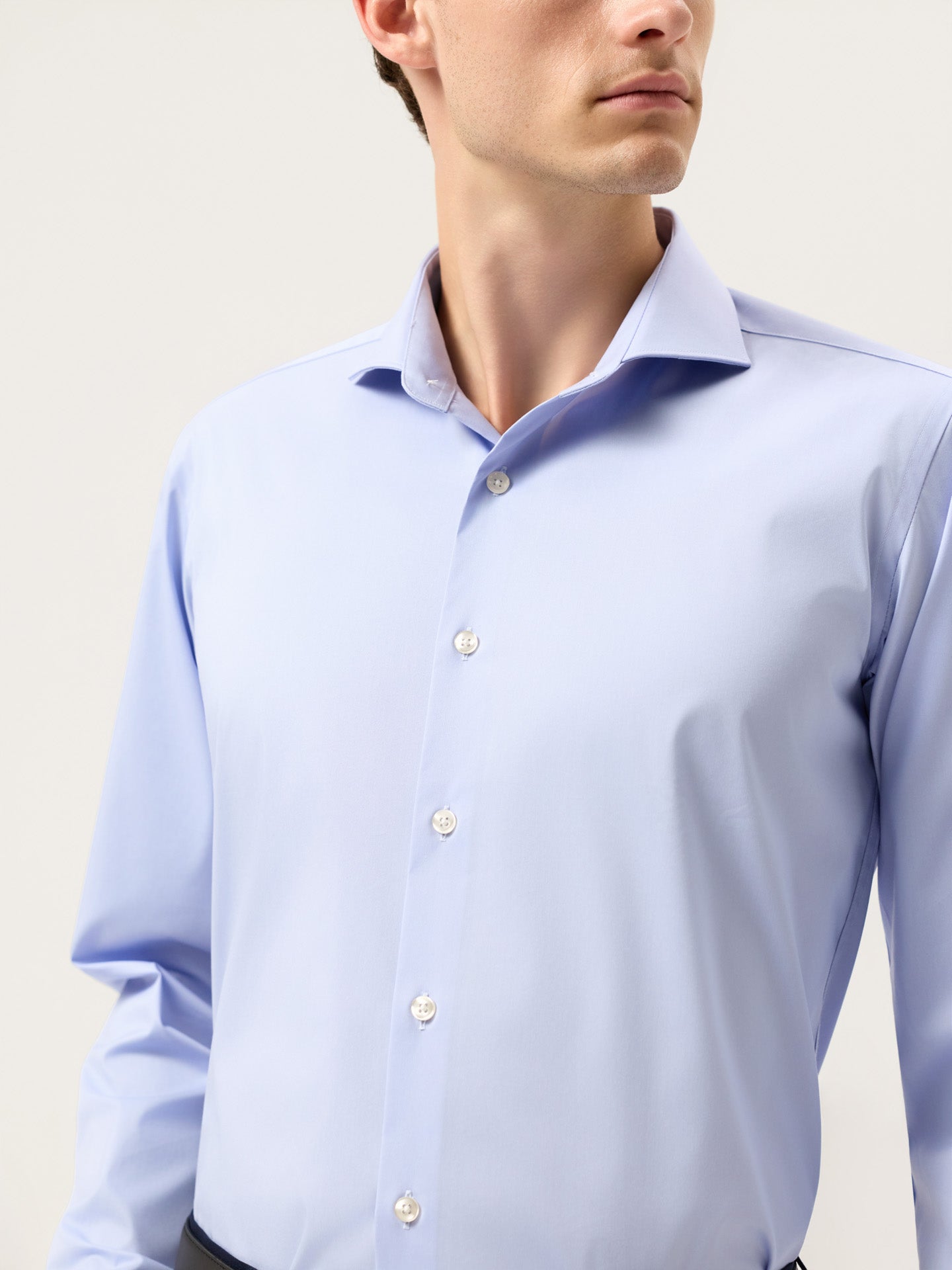 Slim Fit Cotton Stretch Travel Shirt With Dublin Collar And Double Cuff