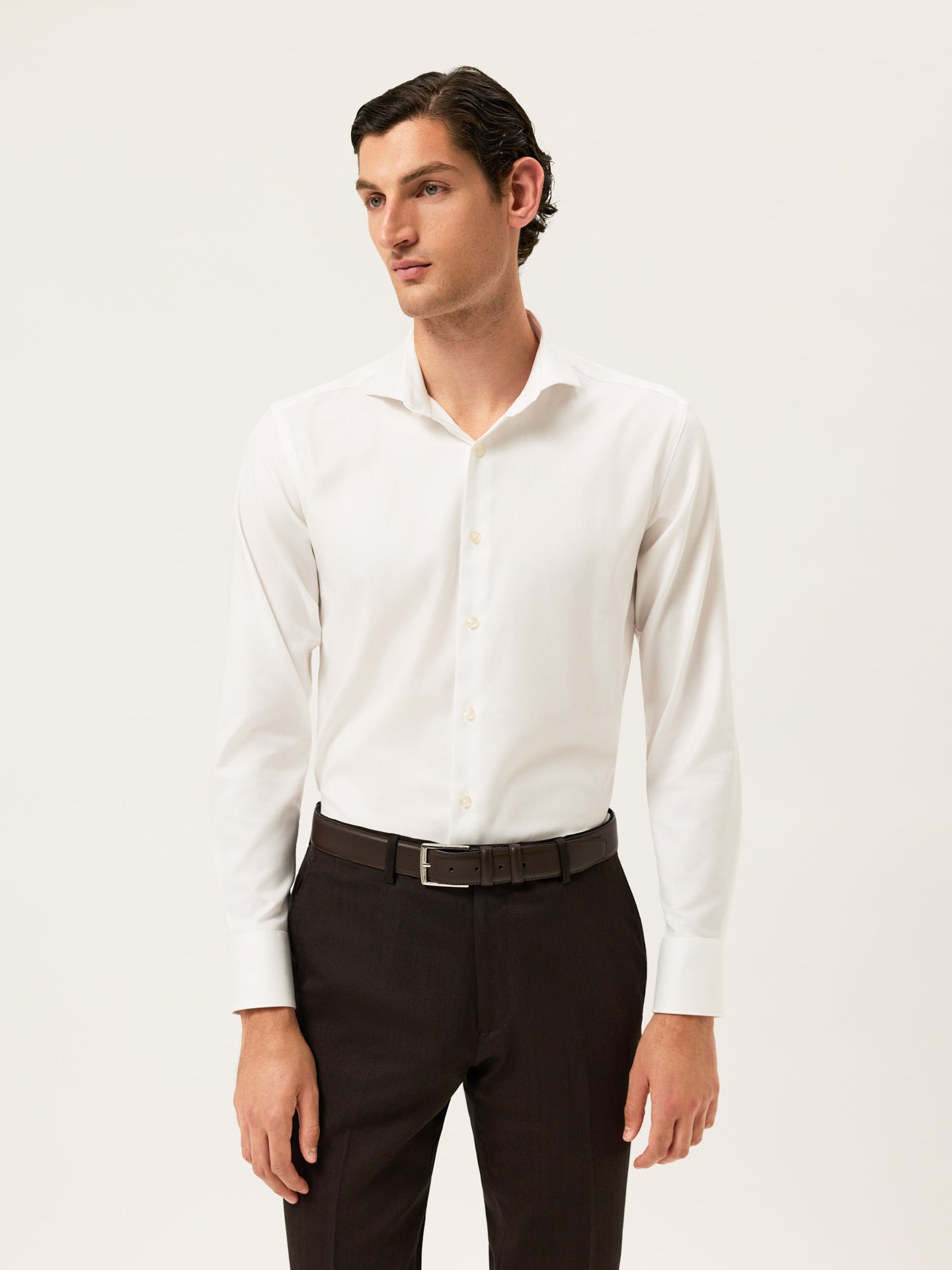 Slim Fit Herringbone Formal Shirt With Dublin Collar