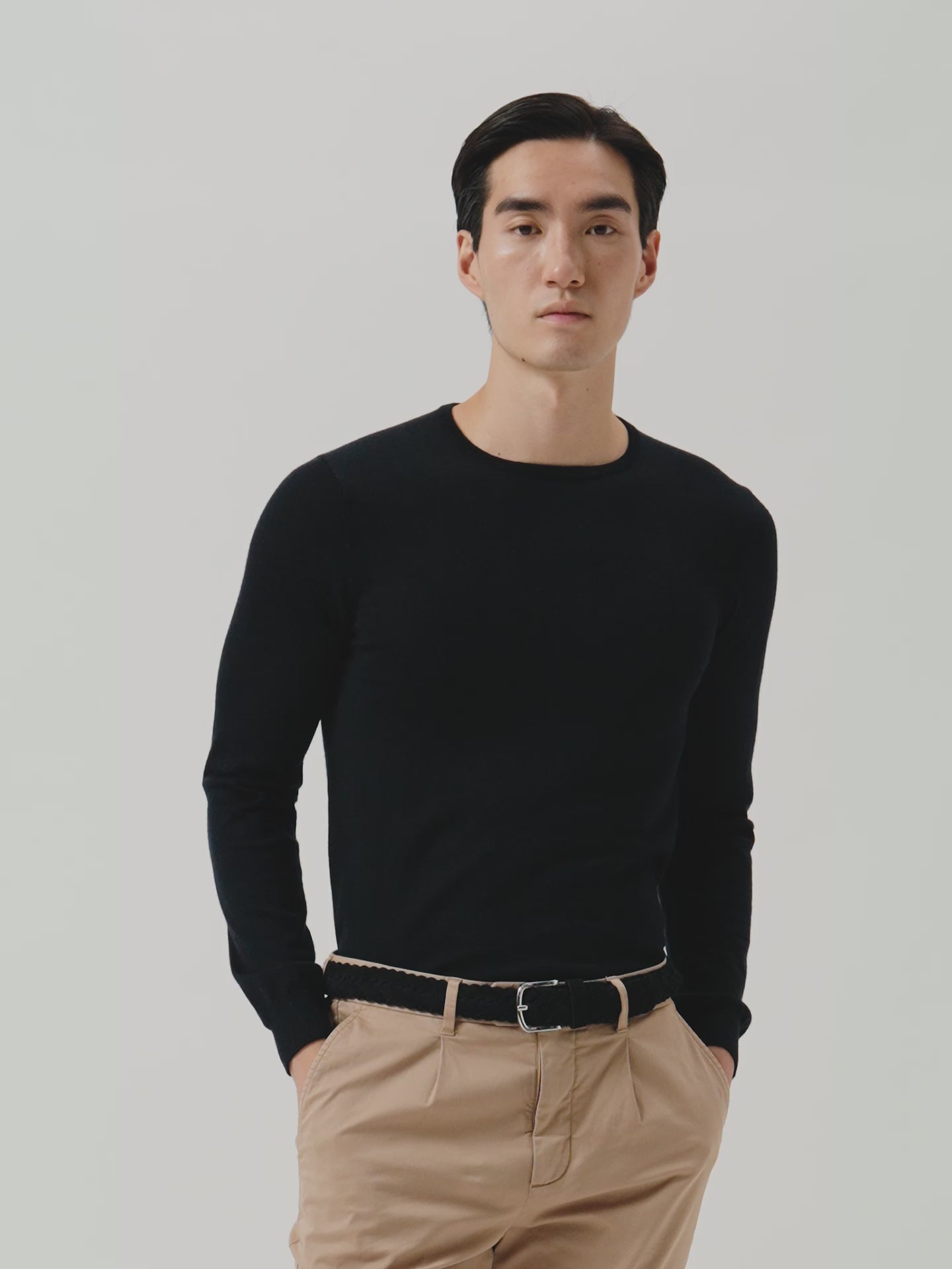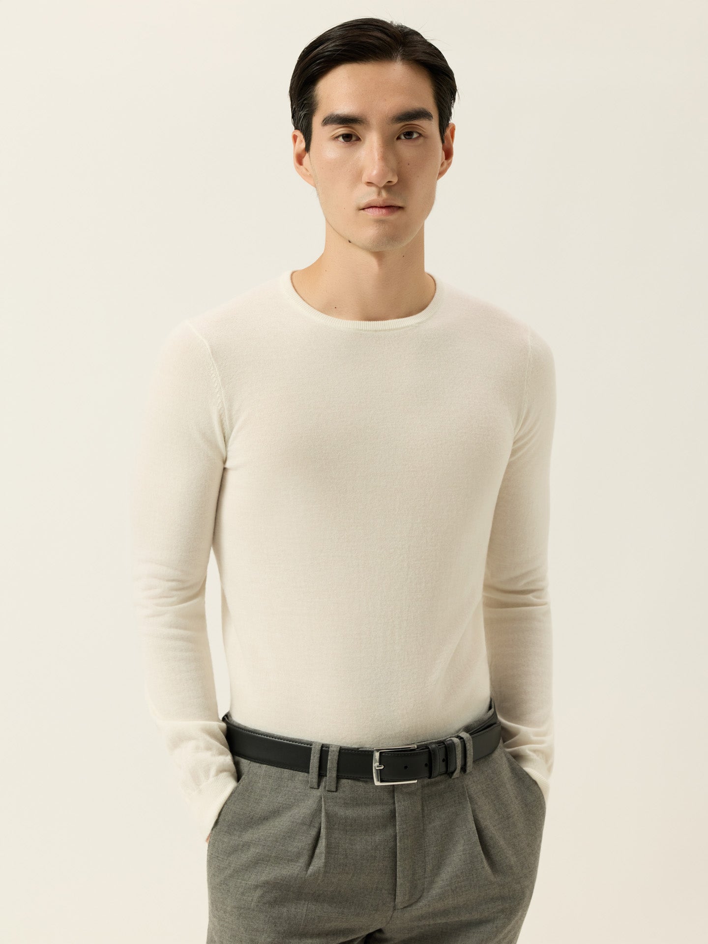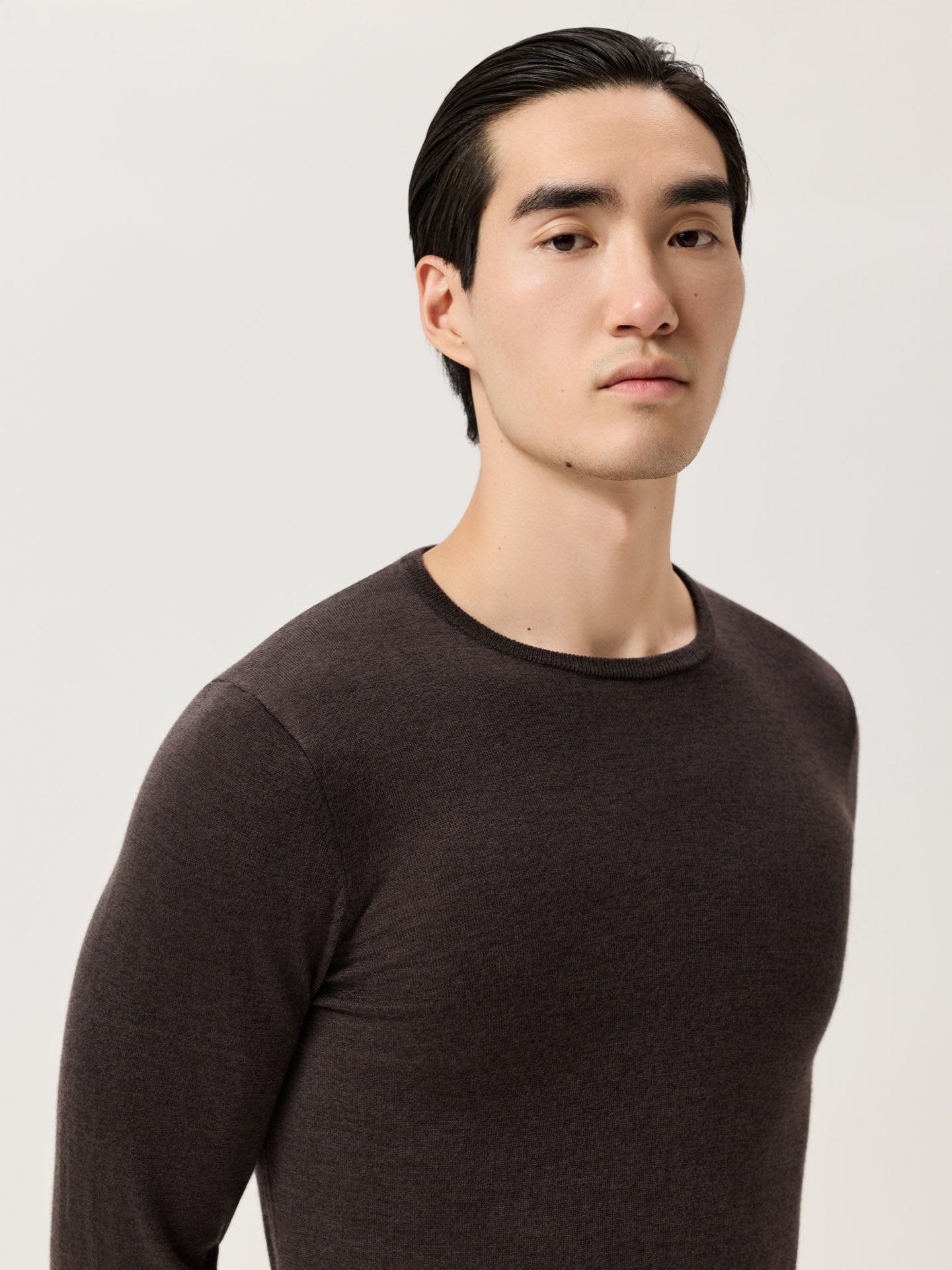 Long Sleeve Crew Neck Sweater In Extra Fine Merino Wool