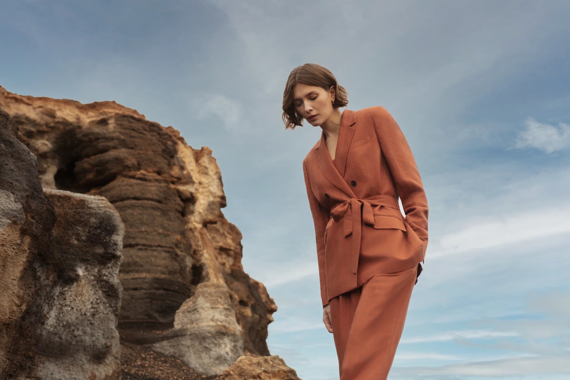 Single-Breasted Blazer In Viscose Linen Blend