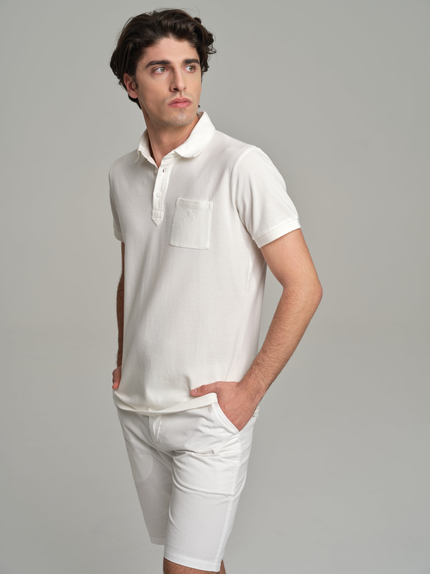 'Respekt' garment dye piquet polo shirt made of 100% BCI cotton with logo-embroidered chest pocket. From our 'Relax' line, features slim fit, collar in piquet fabric, button placket fastening and short sleeves with Malha ribbed cuffs. 'Better Cotton Initiative' - this garment is made with the most ecological cotton: its production sustains the health of soils, ecosystems and people by using natural processes rather than artificial inputs.