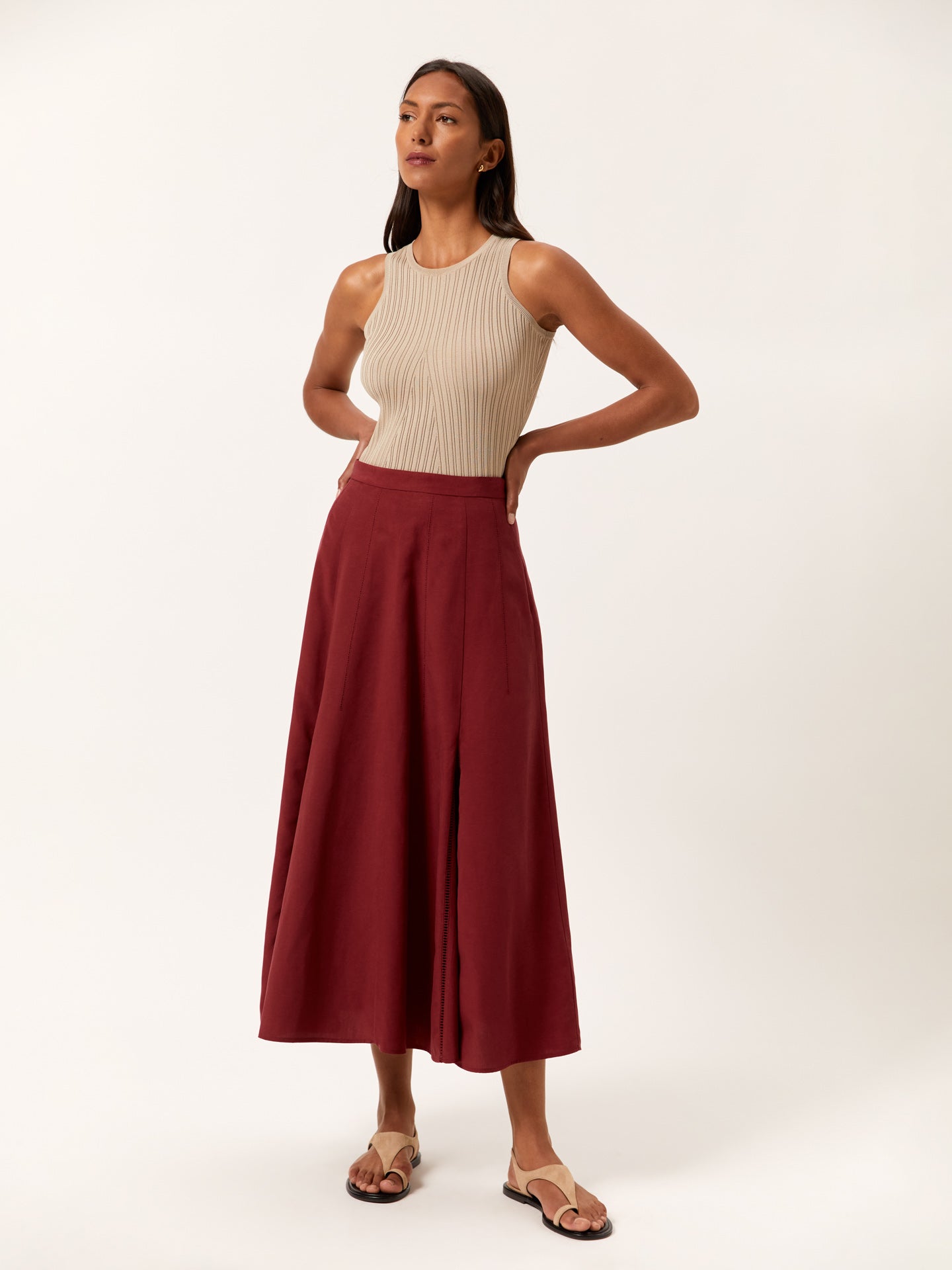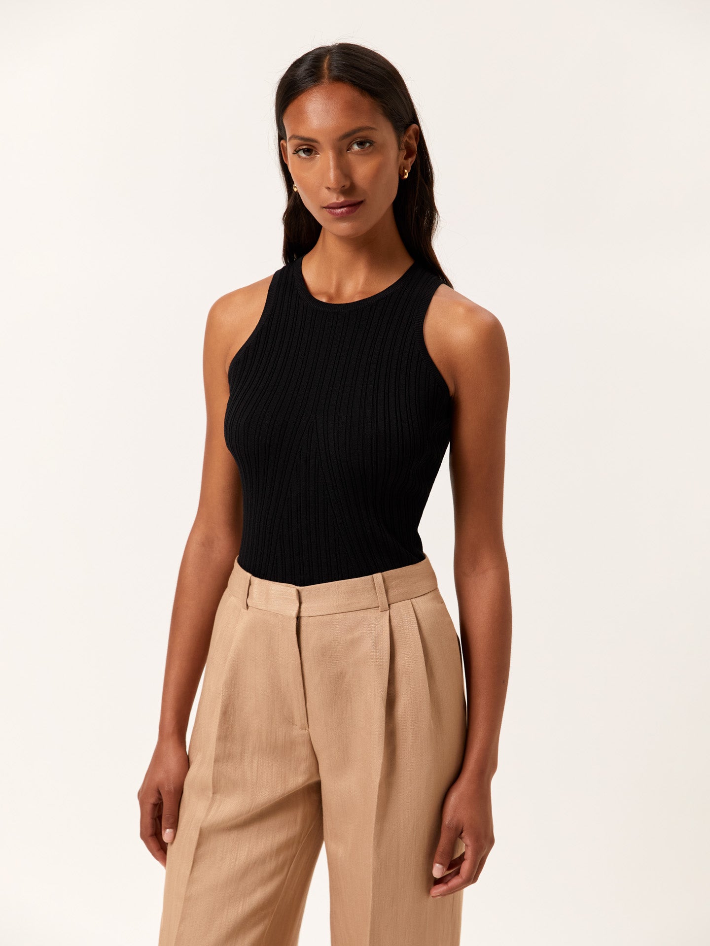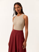 Ribbed Tank Top In Viscose & Nylon Blend