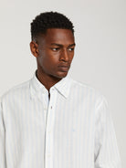 SPECIAL EDITION casual shirt made of cotton-linen blend with stripes. Featuring regular fit, button-down collar and front button-up fastening. Long sleeves with single cuffs with 2 buttons. Chest logo embroidery.