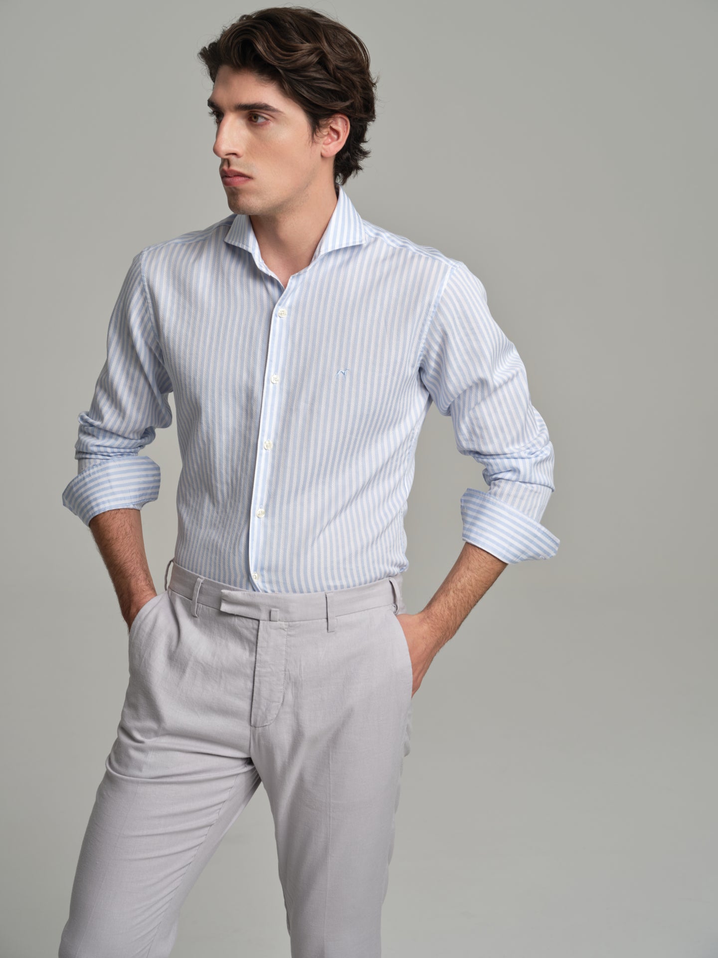 Slim fit casual striped piquet structure shirt