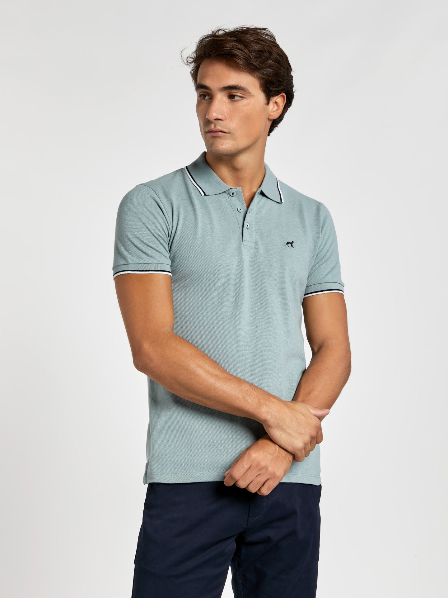 Slim fit piqué polo shirt with contrast stripe