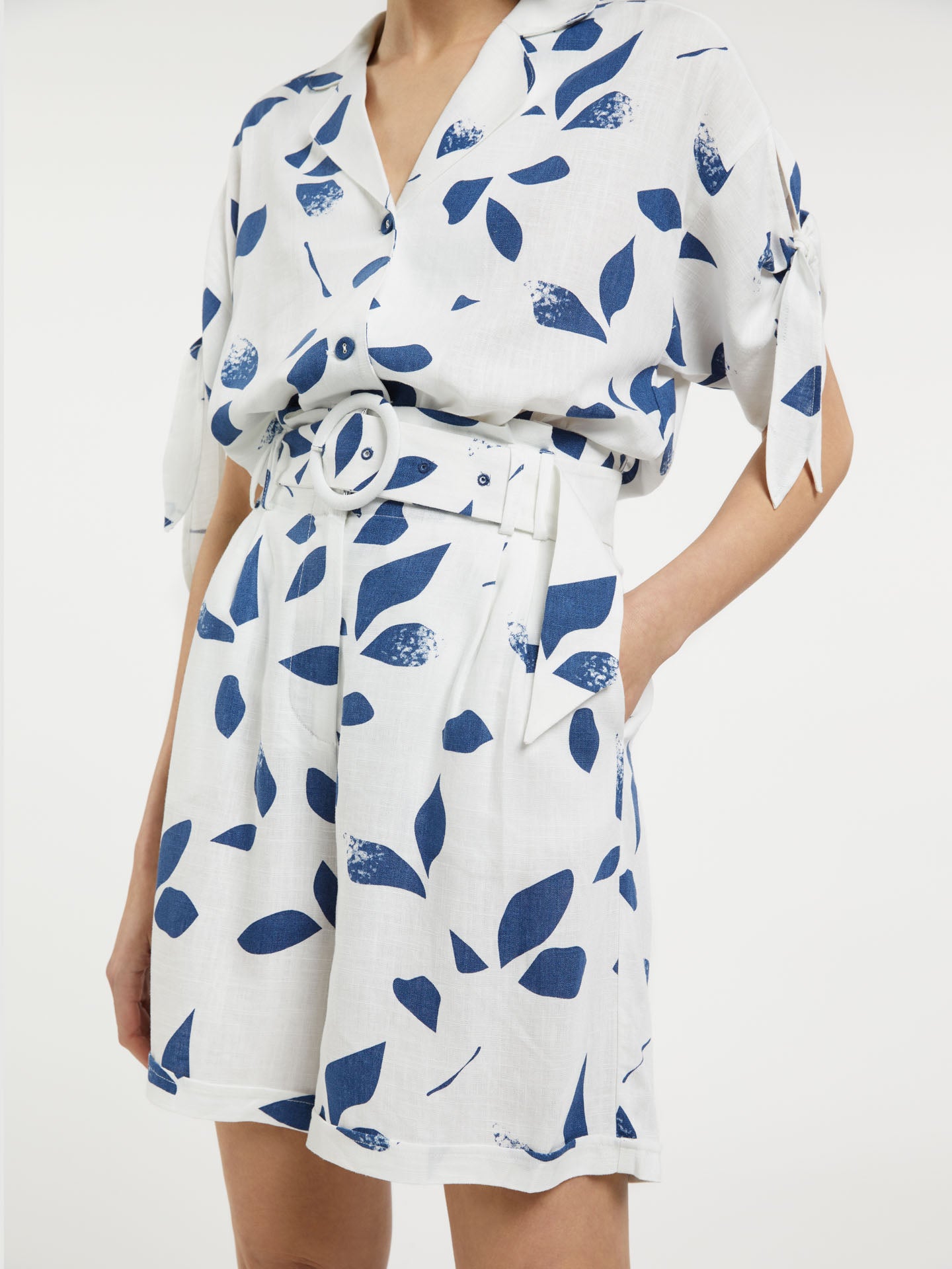 Printed Wide Leg Shorts With Belt