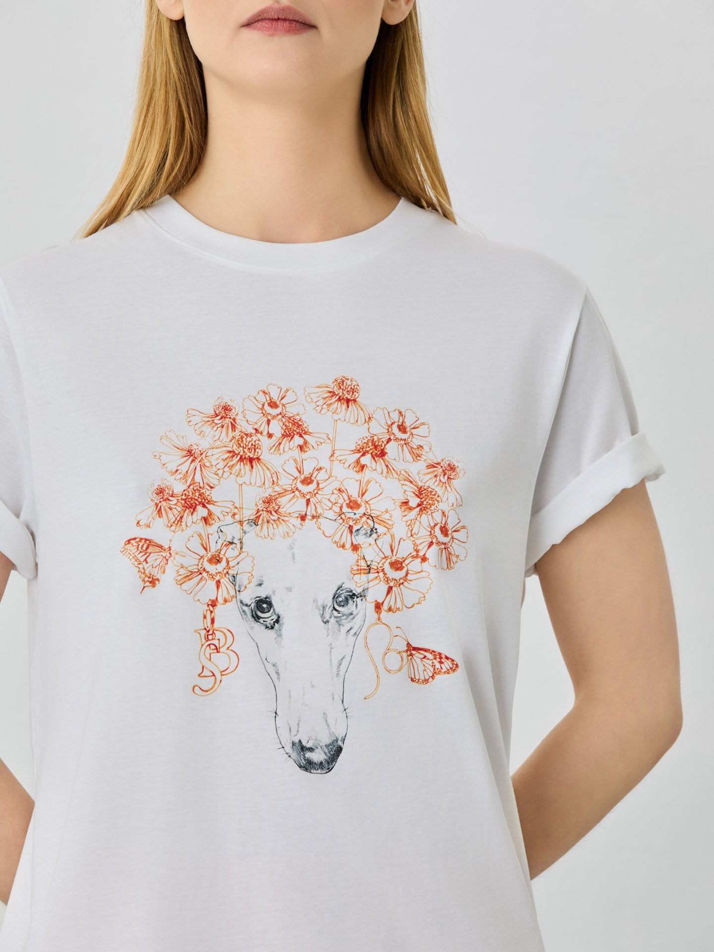 Regular fit Leo t-shirt from our Special Edition Zodiac Capsule collection. Made in organic cotton with a Leo Sign illustration by the renowned Portuguese Fashion Illustrator Antonio Soares. This special collaboration with Antonio Soares, brought to life a fresh representation of the zodiac signs trough our greyhound logo, mixing the classic image with fun and colorful details for a more contemporary look. Features a round neckline and short sleeves.