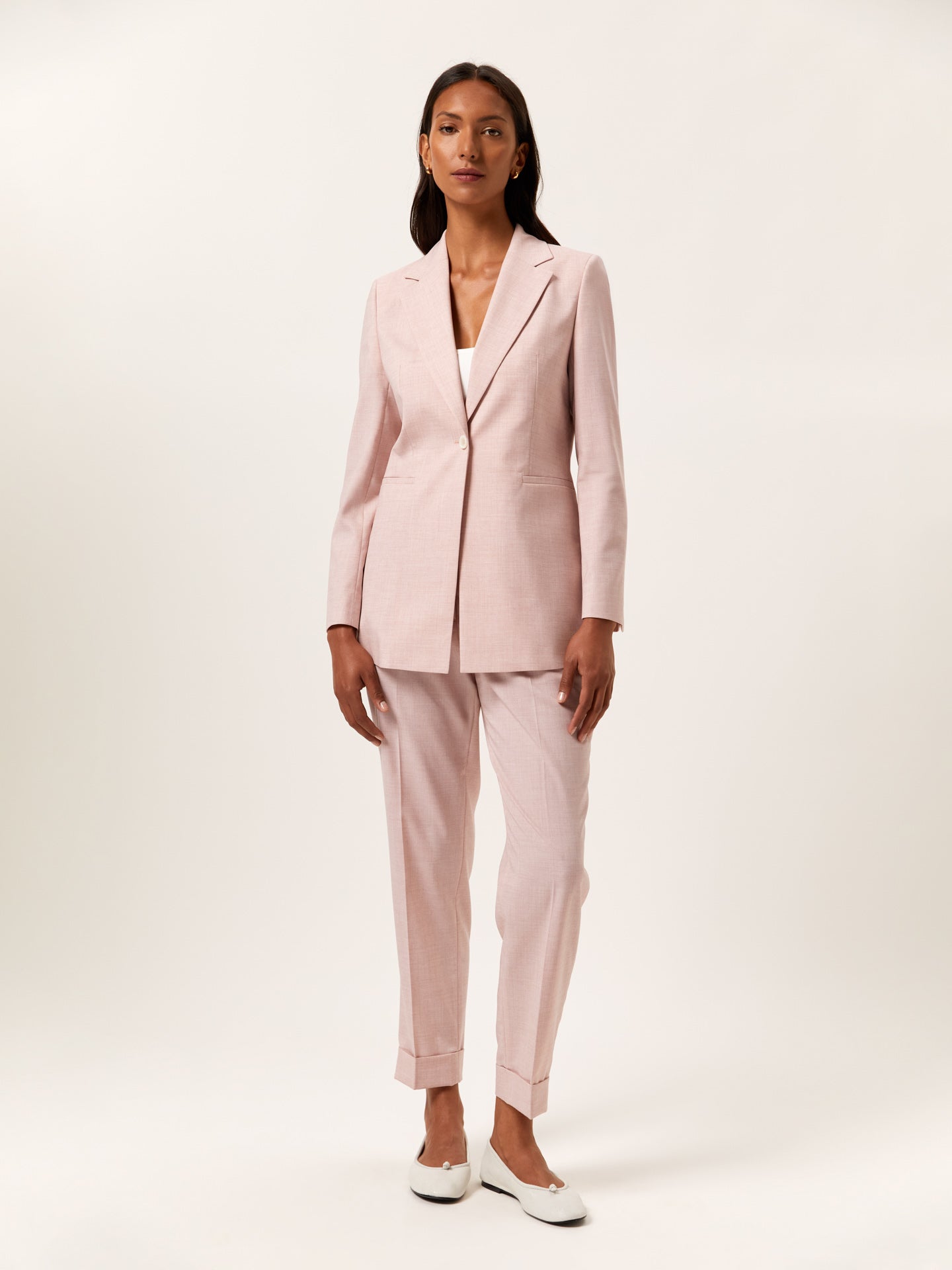 Single-breasted blazer with wide notch lapel, long sleeves with three button cuffs and two back slits. Expertly tailored from Viscose blend melange fabric. Features a our new Slim fit with enhanced shoulder structure, fully lined interior and two front welt pockets.
