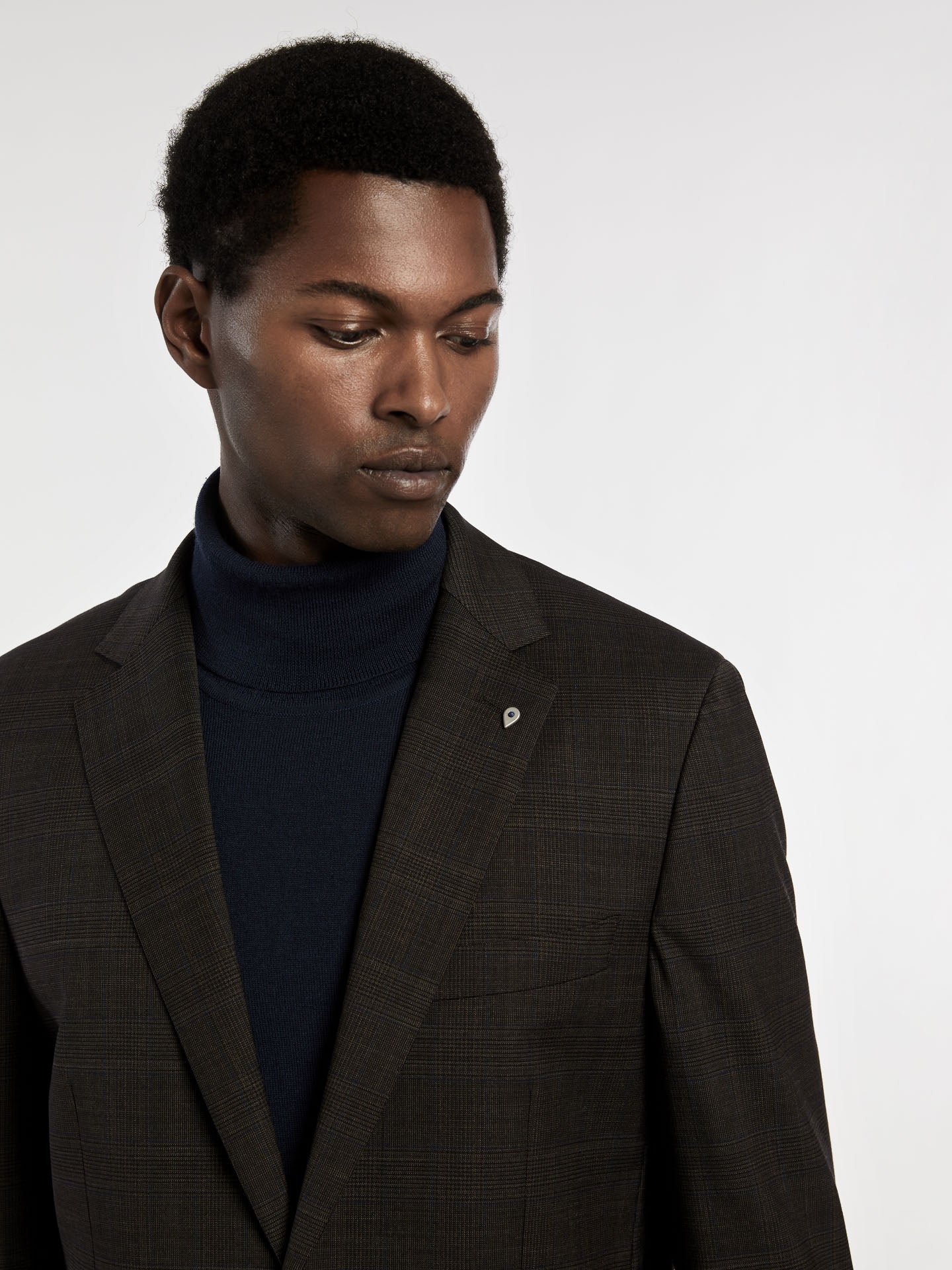 Performance suit expertly tailored from high performance wool with added elastane fibres mean every suit can offer perfect comfort and an excellent fit, the top-performance yarns guarantee excellent elasticity, breathability, and crease resistant. This slim fit two-piece suit creates a relaxed silhouette that is ideal for all profiles. Two-button blazer with notch lapels and welt pockets with flap, four-button cuffed, two back slits, special inside pockets with zip and inside pocket with EMW protection. Trousers with zip fly and button extended waistband fastening, two side pockets with coin pocket, two back welt pockets and belt loops. All suits have regular fitting measures from sizes 56 to 62. This suit is ideal for office wear and for those situations when looking impeccable is essential. Suits for every occasion. Once you’ve tried them, you’ll never want to take them off.