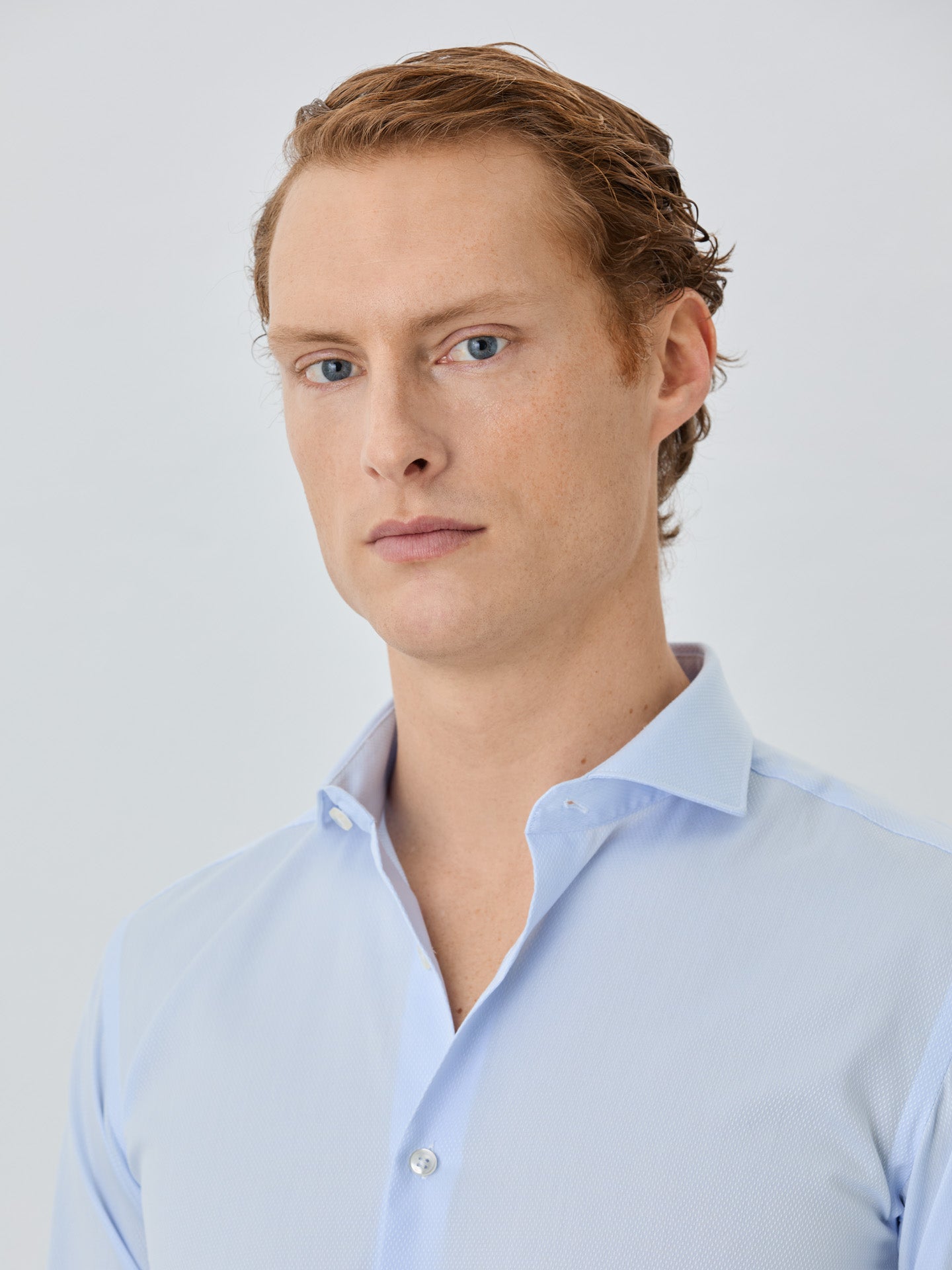 Business line shirt in plain structure. Fabric made of 100% cotton. Featuring slim fit, Dublin collar and front button-up fastening. Long sleeves with single cuffs with 2 buttons. Side gussets in self fabric. All shirts have regular fitting measures from size 44. Thanks to impeccable workmanship, the finest materials, taste, and passion, our business shirt is perfect for any formal occasion, where the most important thing is to look clean-cut, elegant, and understated.