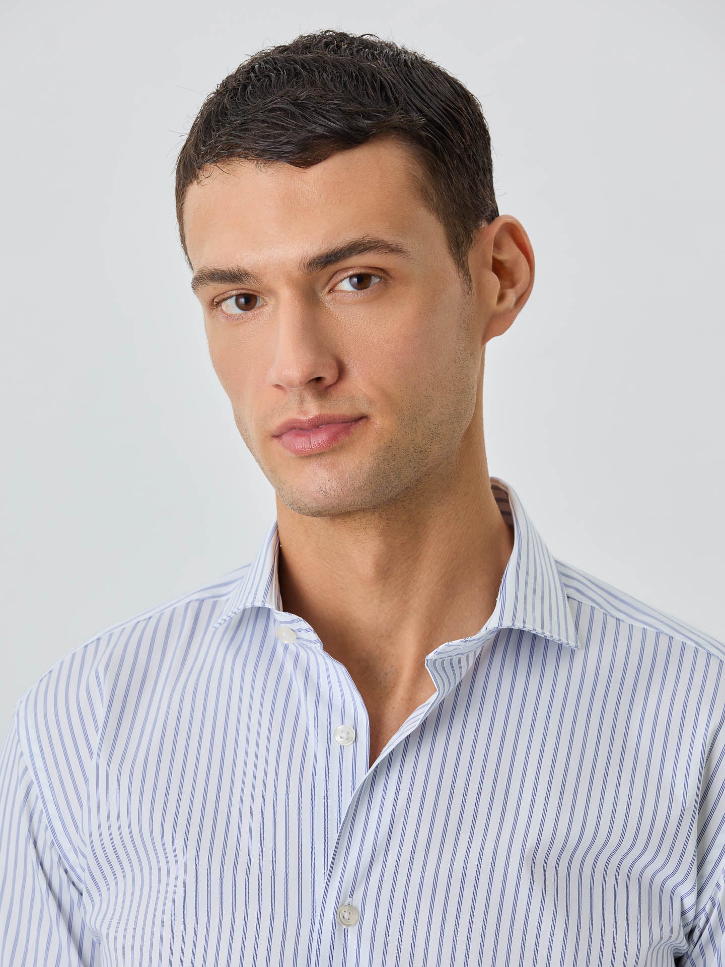 Slim Fit Shirt With Dublin Collar In Cotton Blend With Stripes