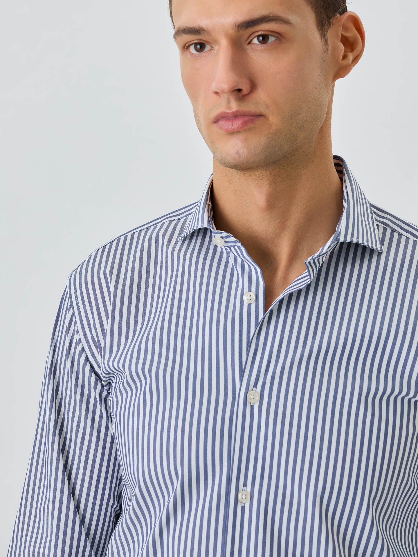 Slim Fit Shirt With Dublin Collar In Cotton Blend With Stripes
