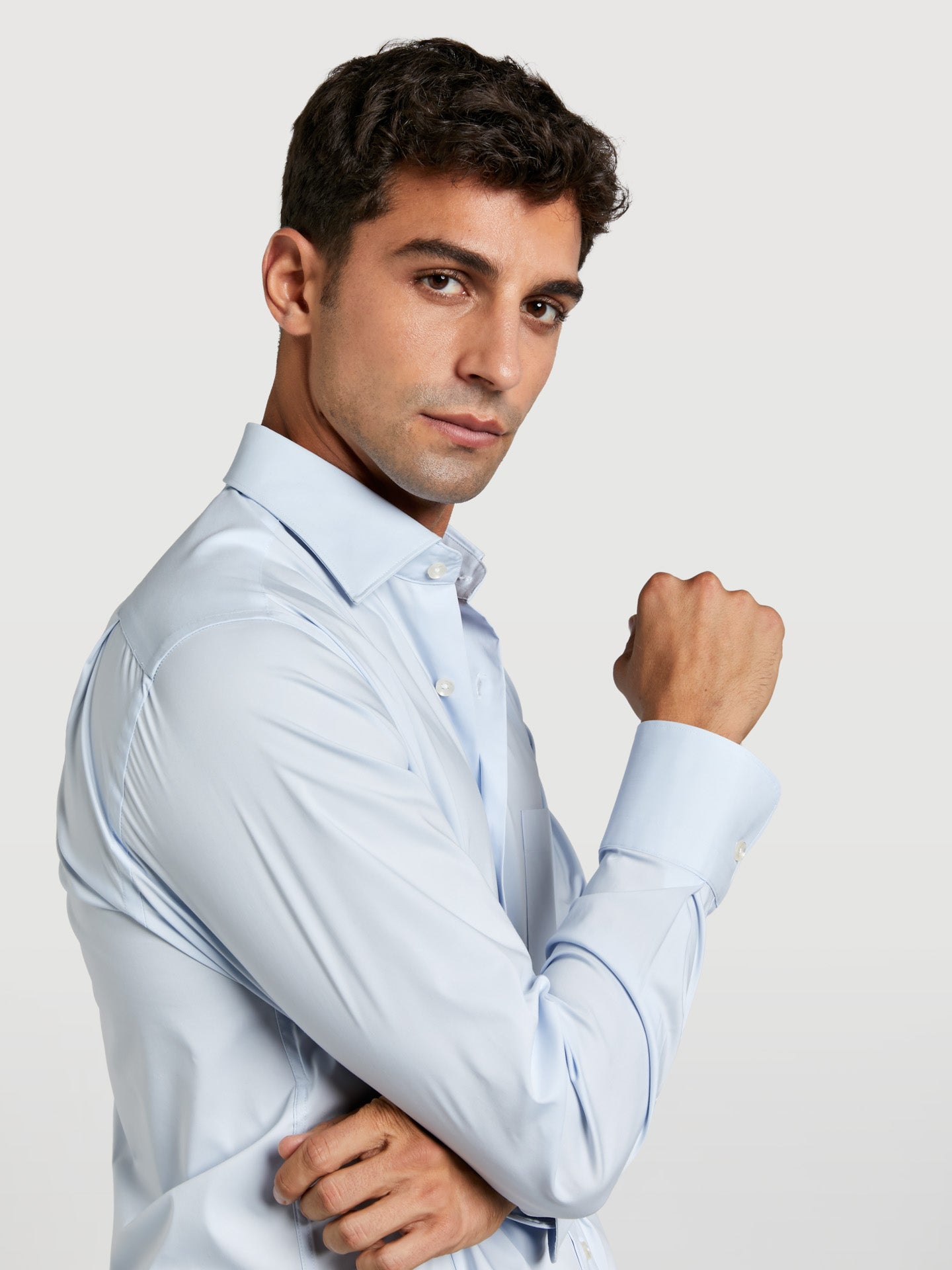 ICON K-Easy line shirt in plain comfort cotton poplin. Fabric made of blended cotton with added polyester and spandex fibres mean every shirt can offer perfect comfort and an excellent fit, the top-performance yarns guarantee excellent elasticity, breathability, and shine. Featuring regular fit, Oxford collar, front button-up fastening and chest pocket. Long sleeves with single cuffs with 2 buttons. Side gussets in self fabric. This shirt is ideal for office wear and for those situations when looking impeccable is essential. Shirts for every occasion. Once you’ve tried them, you’ll never want to take them off.