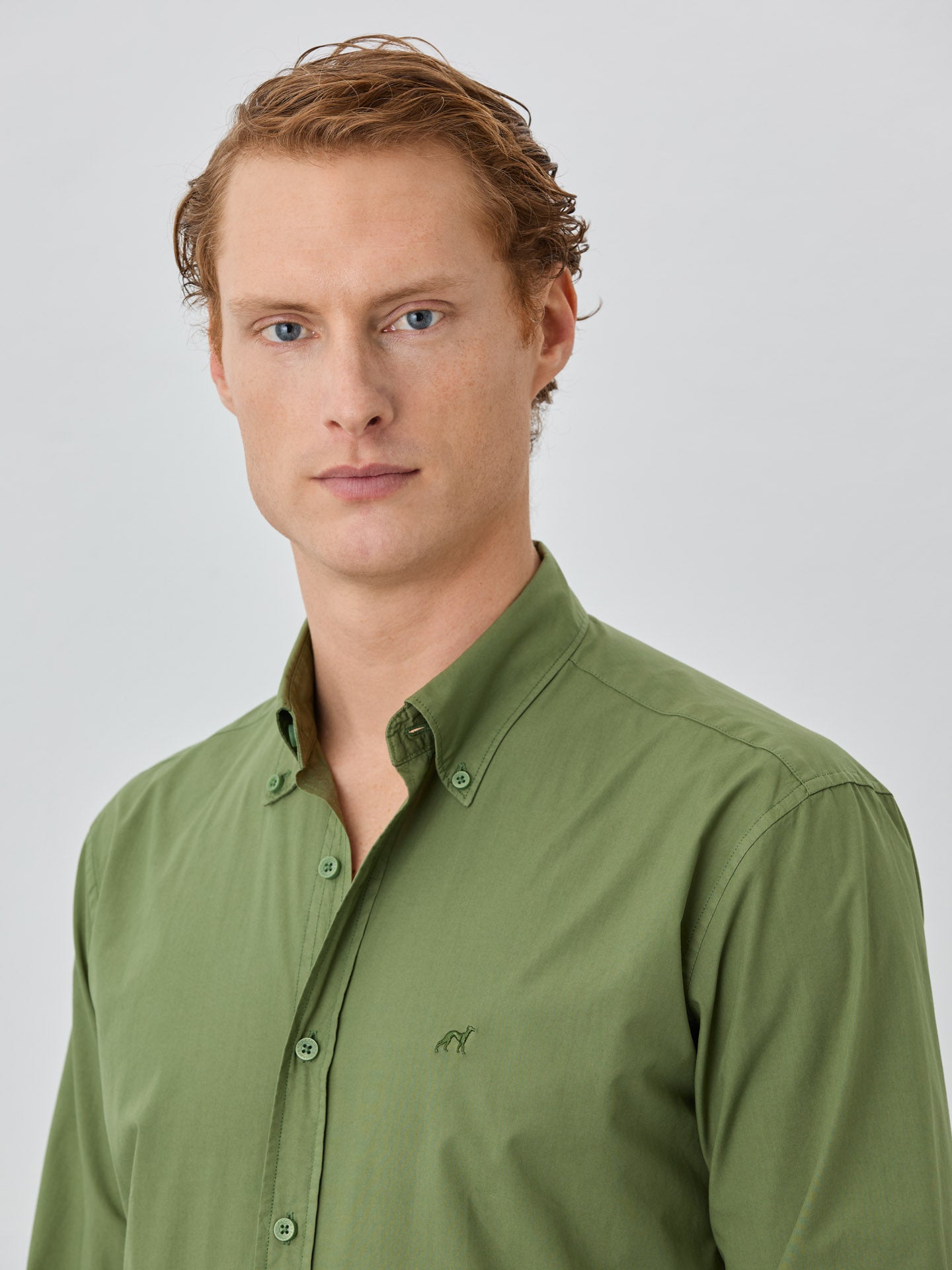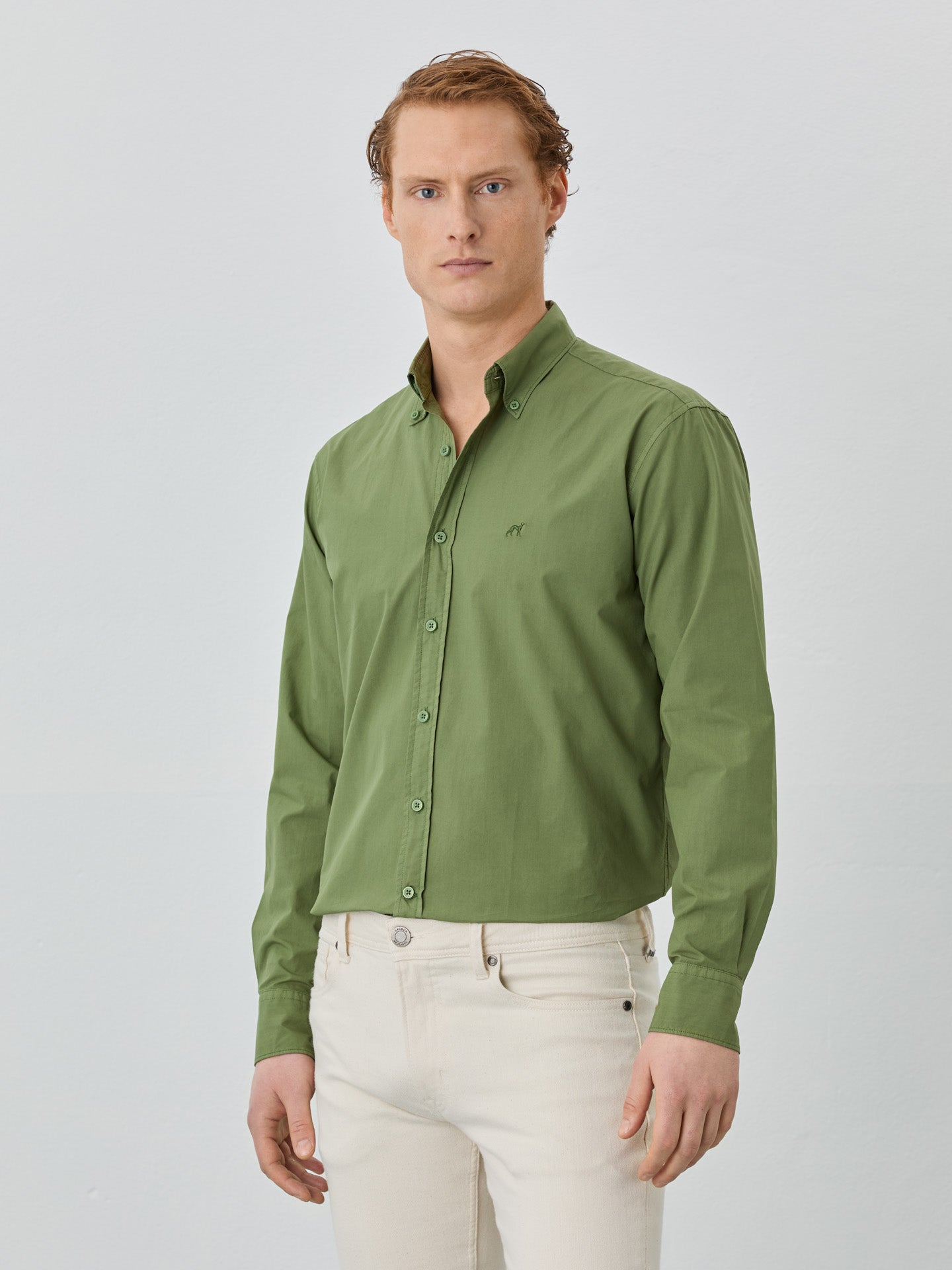 Regular Fit Shirt With Button Down Collar In Poplin Cotton