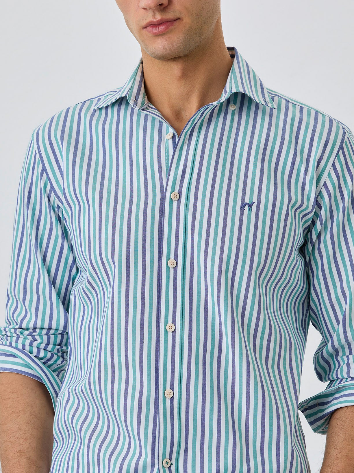 Slim Fit Shirt With Open Collar in BCI Cotton With Stripes