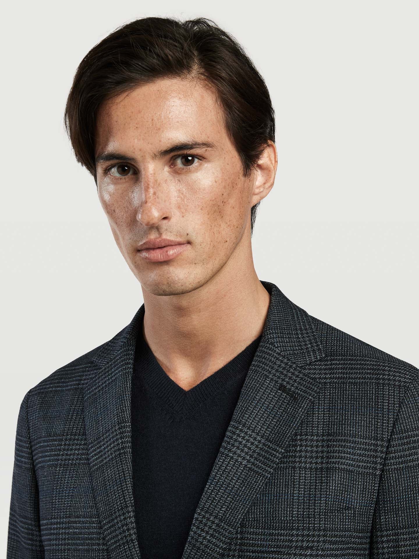 The men's suits from Sacoor Brothers are available with 'Drop 5' and 'Drop 6'. This designation refers to the difference between the blazer size and the trouser size. When ordering a size 46 with 'Drop 5', the trousers will be around size 41, while 'Drop 6' will result in trousers of size 40.