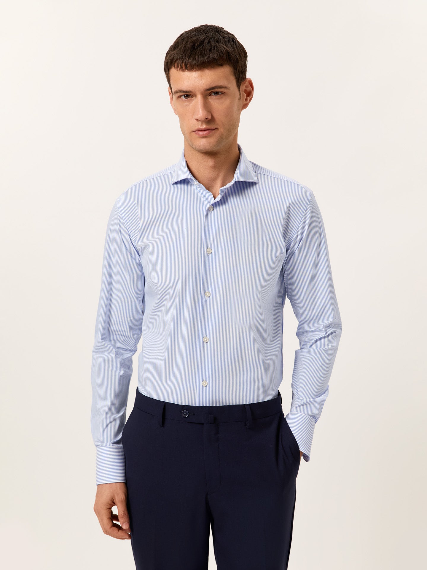Slim Fit Travel Striped Poplin Shirt in Comfort Cotton