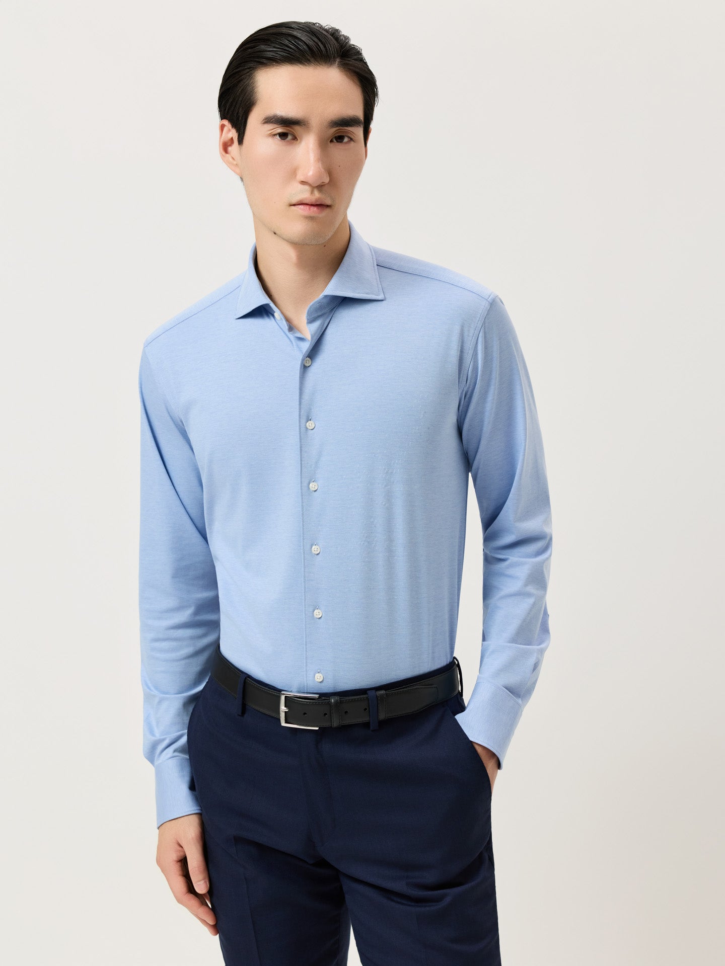 Slim Fit Jersey Stretch Travel Shirt With Newport Collar