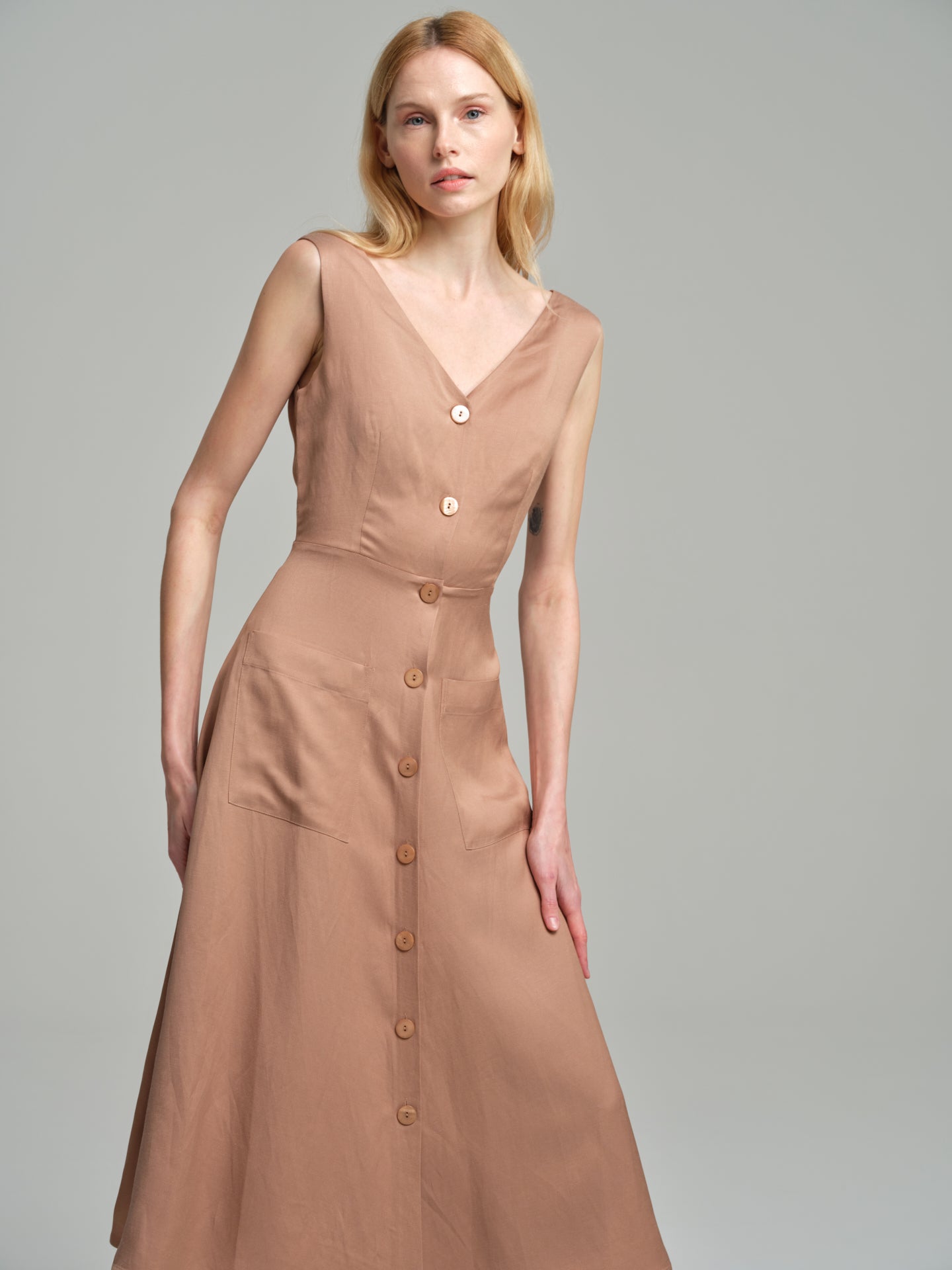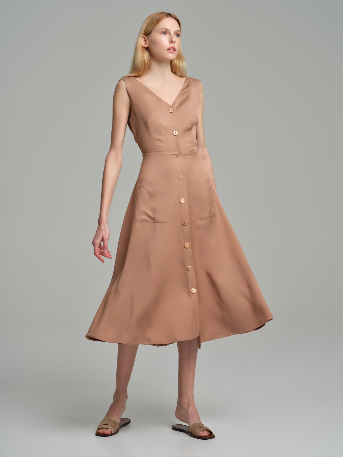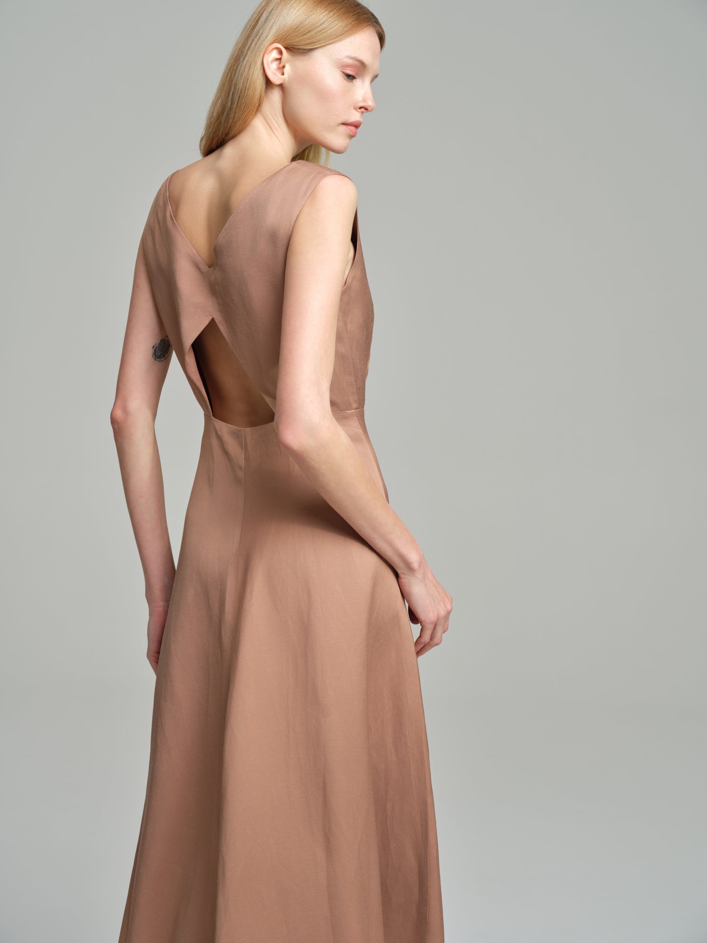 V-neck rustic dress with back opening