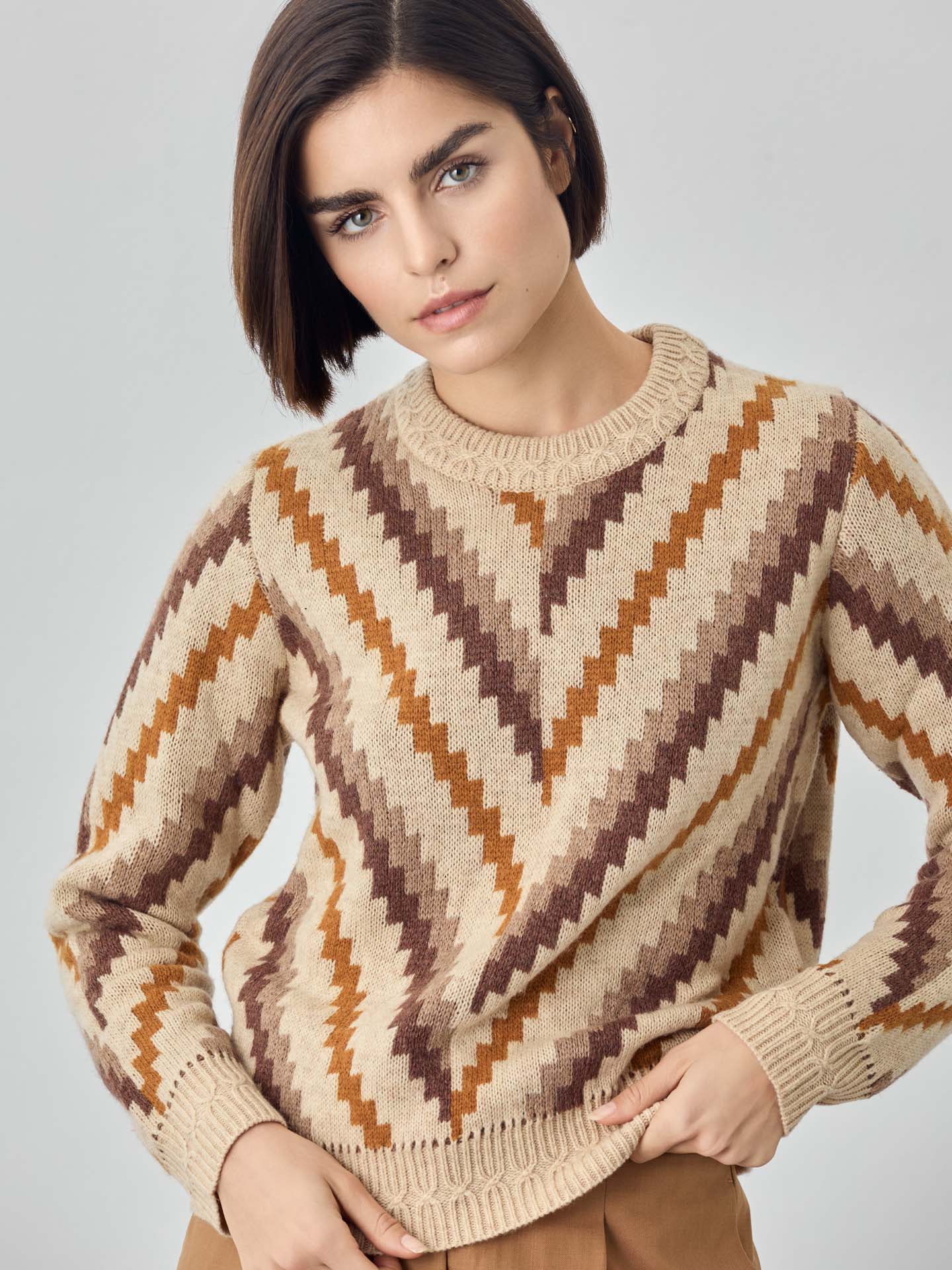 Crew Neck Jacquard Sweater in Merino Wool Blend
