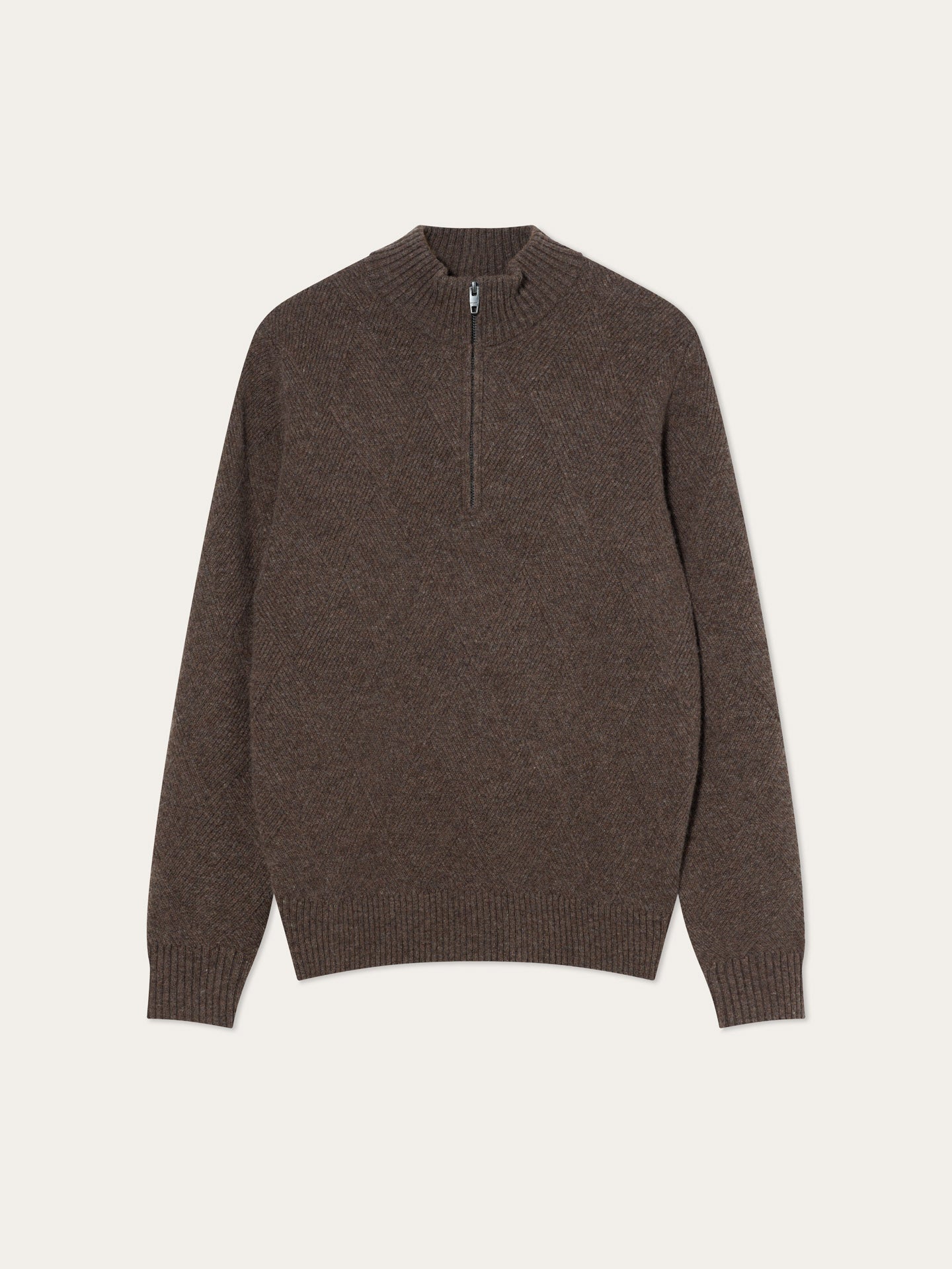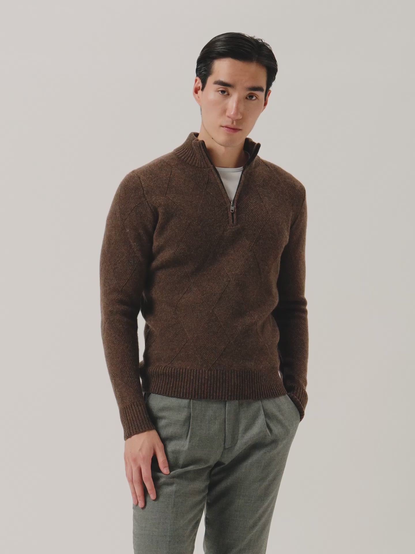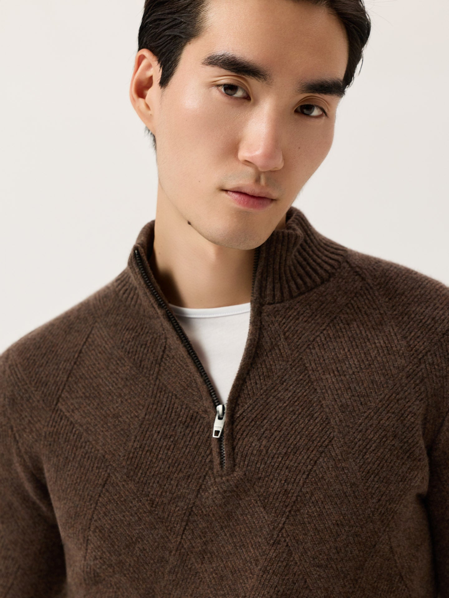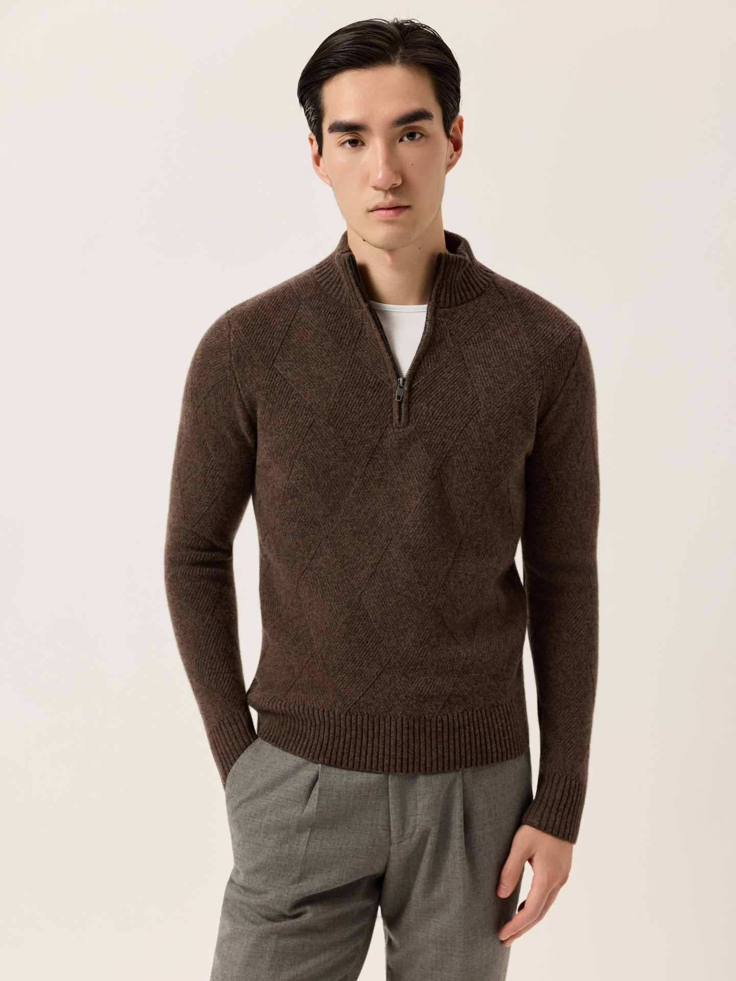 Long Sleeve Half-Zip Sweater With Fancy Stitch In Pure Lambswool