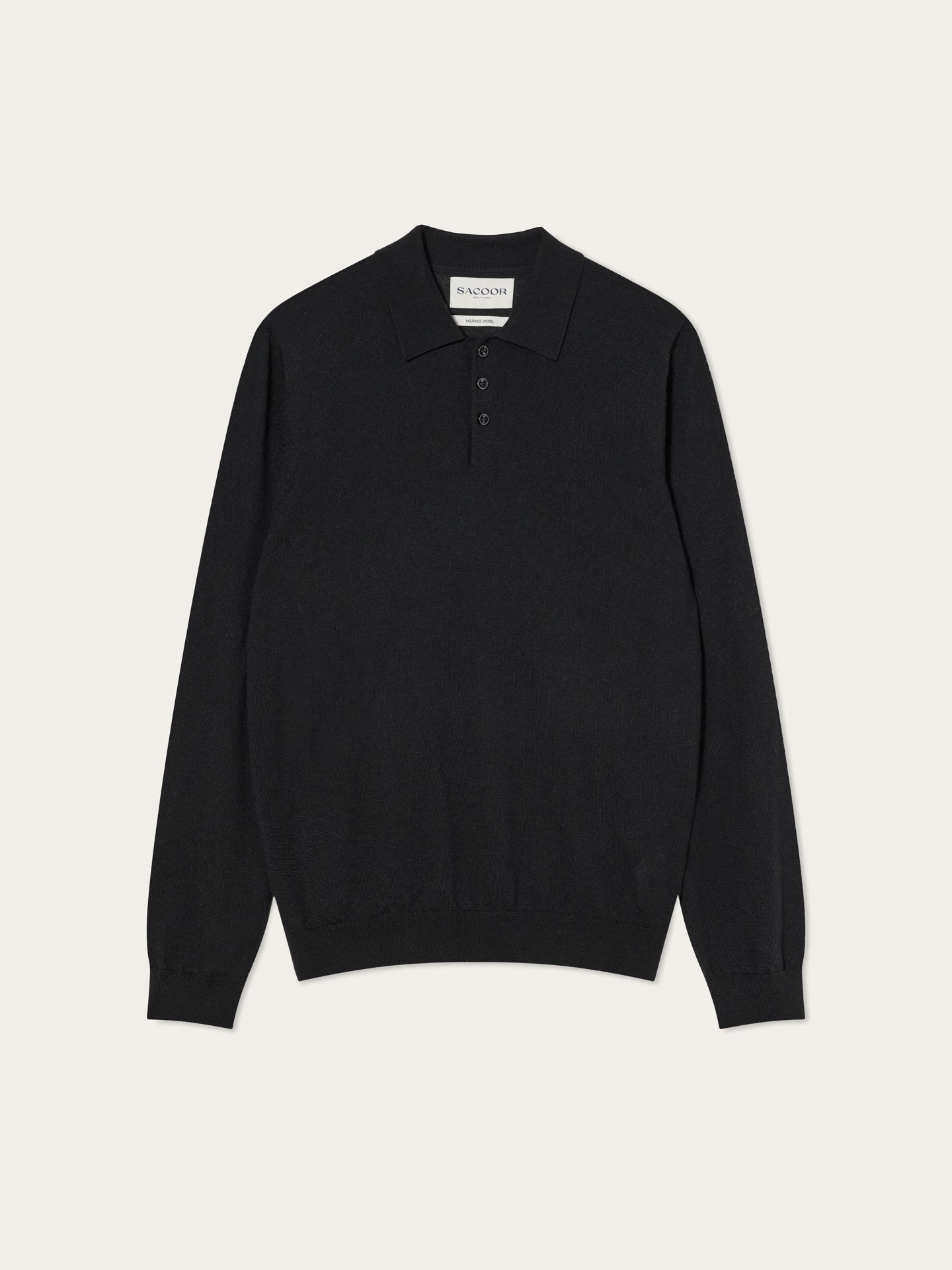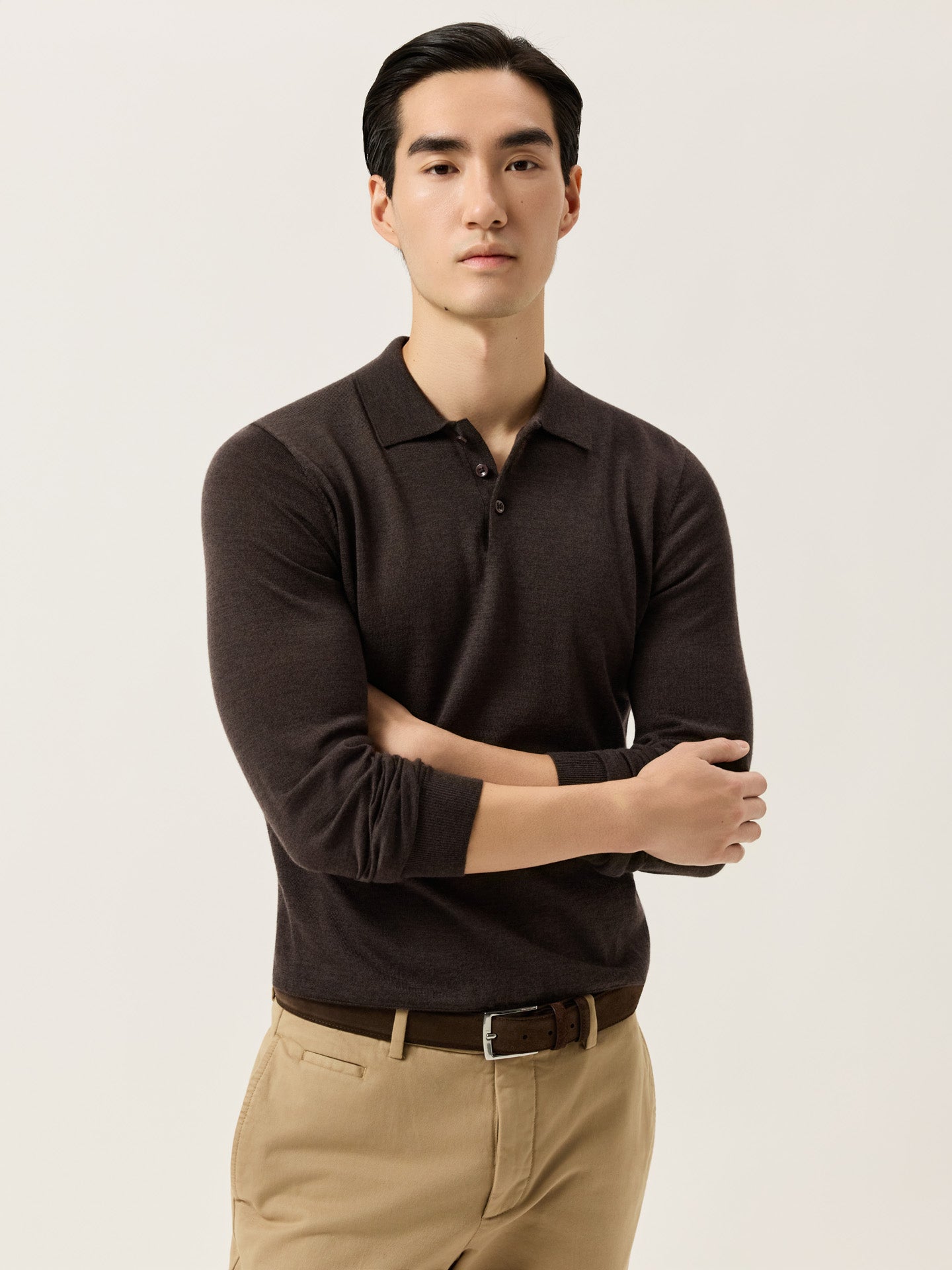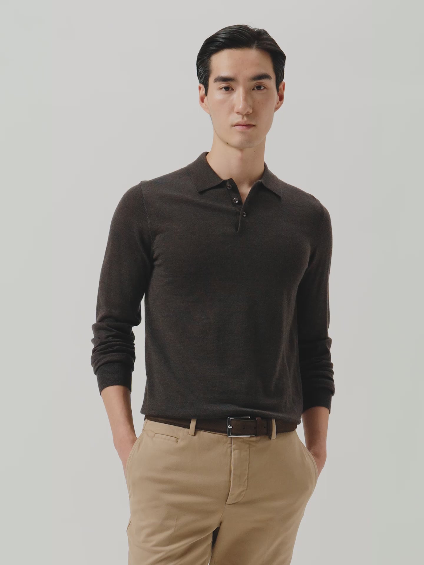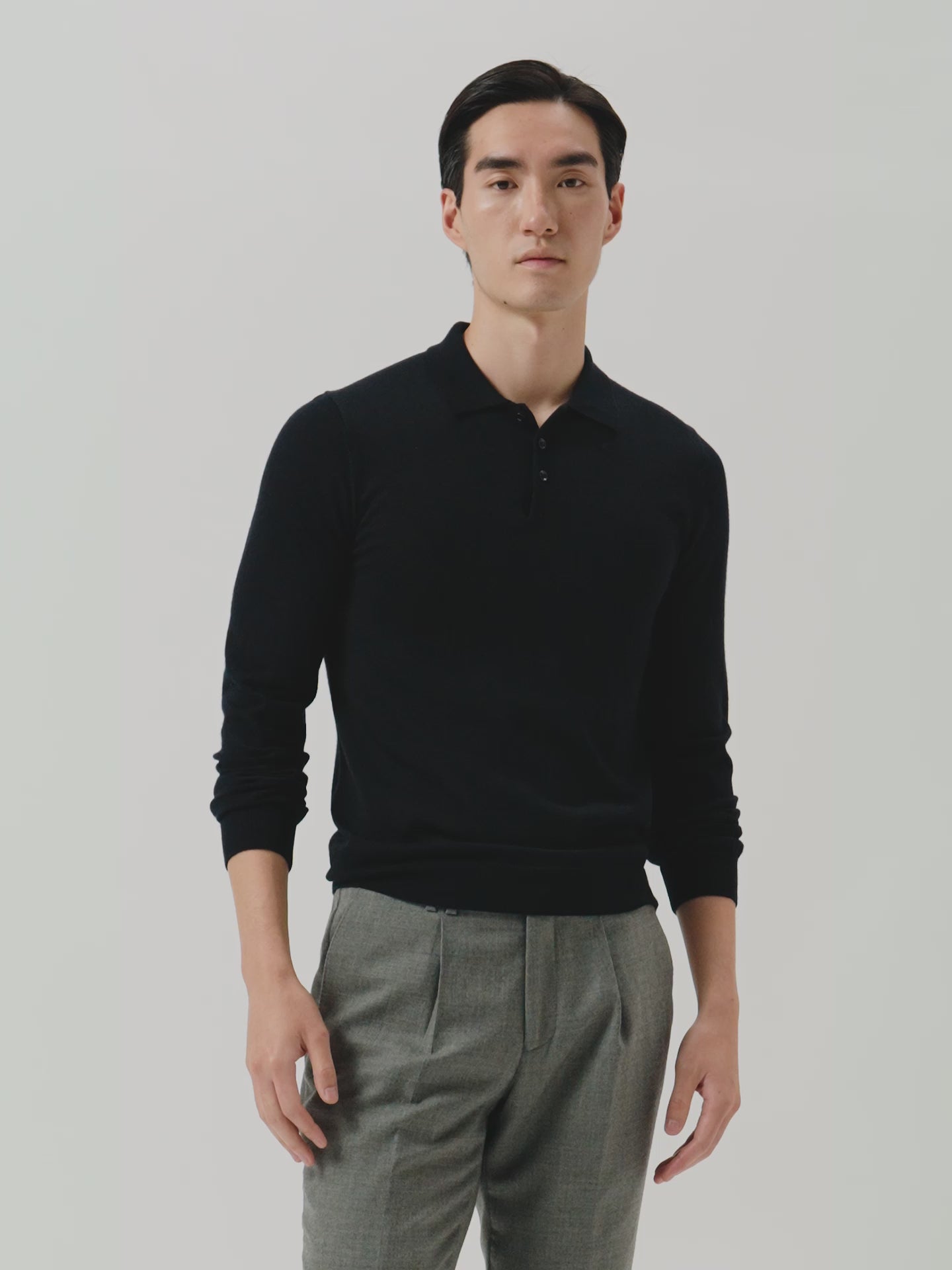 Long Sleeve Polo Sweater In Extra Fine Merino Wool