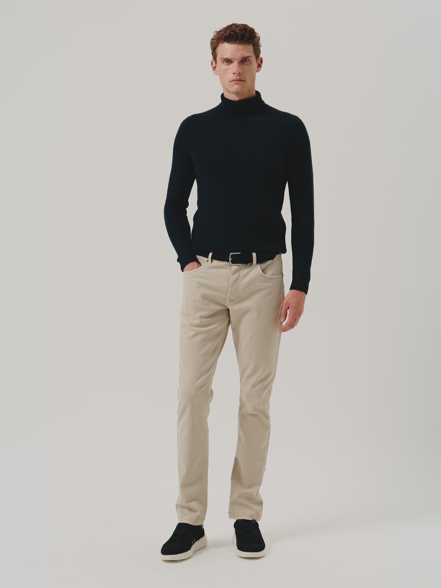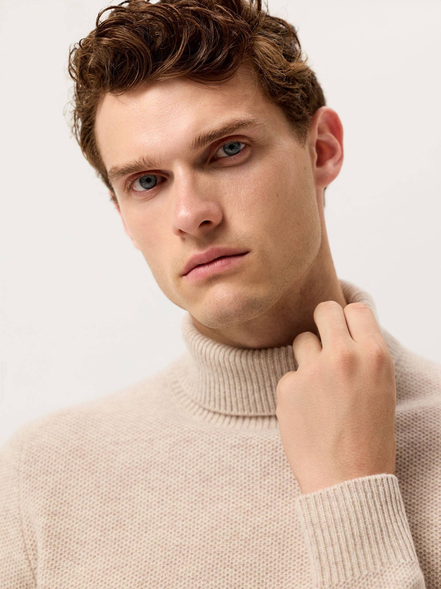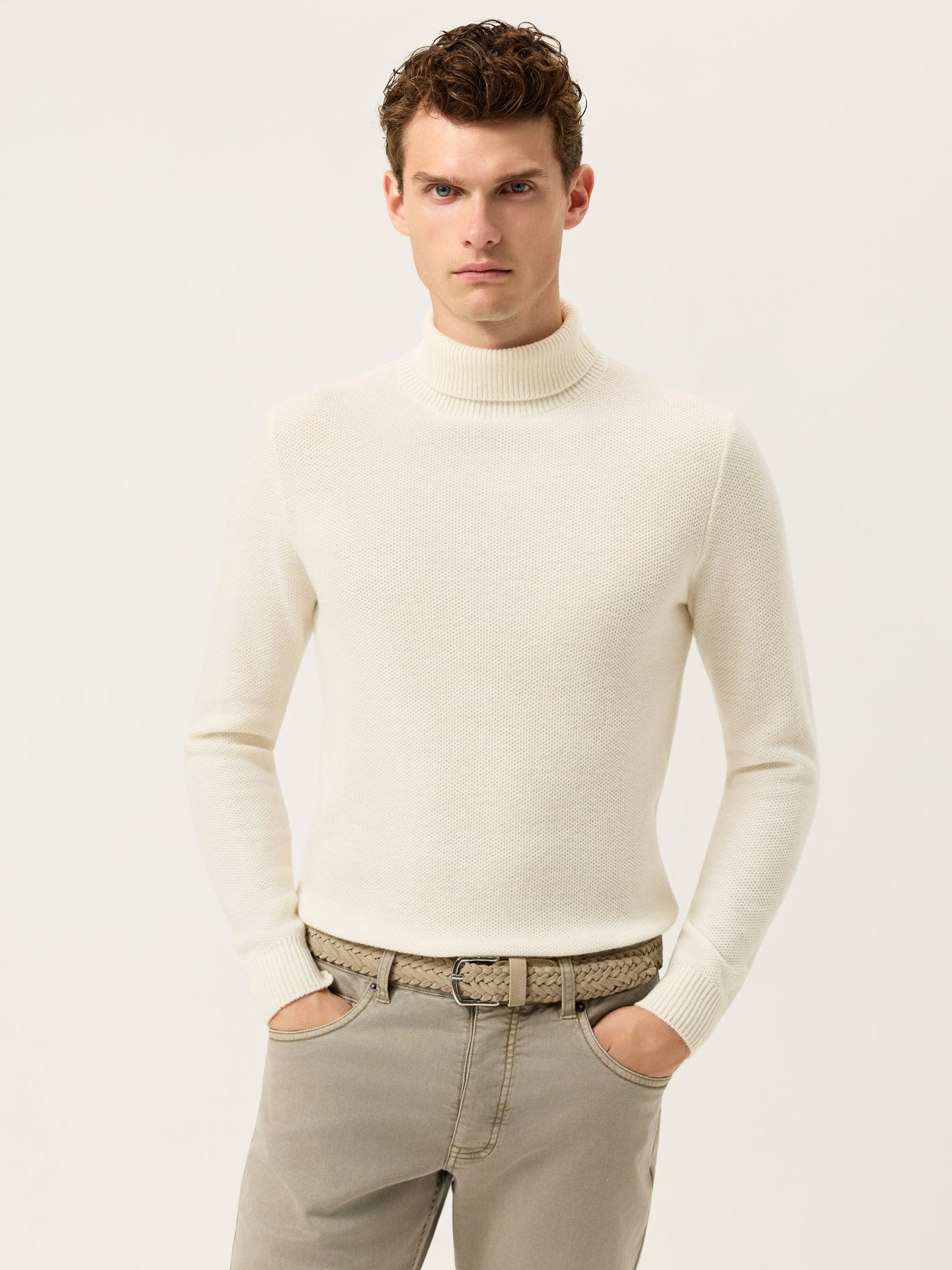 Long Sleeve Turtleneck Sweater With Fancy Stitch In Pure Lambswool
