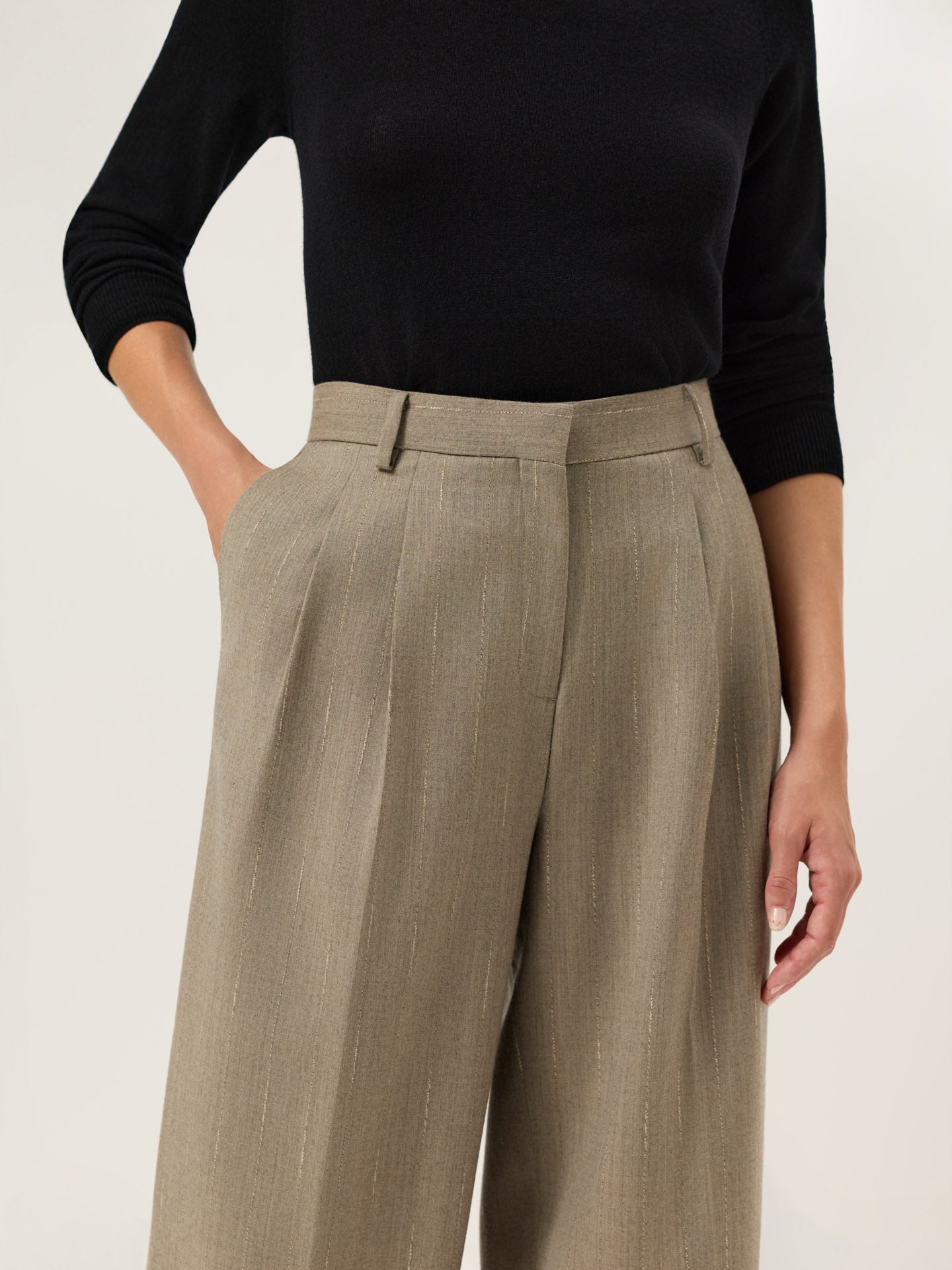 Loose Fit Trousers In Striped Wool Blend With Pleats