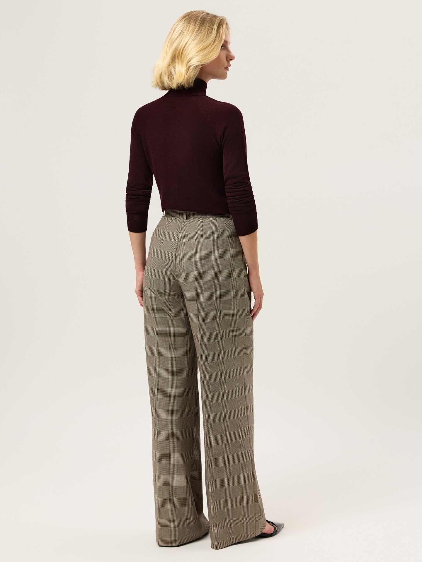 Loose Fit Trousers In Viscose Blend Checks With Pleats