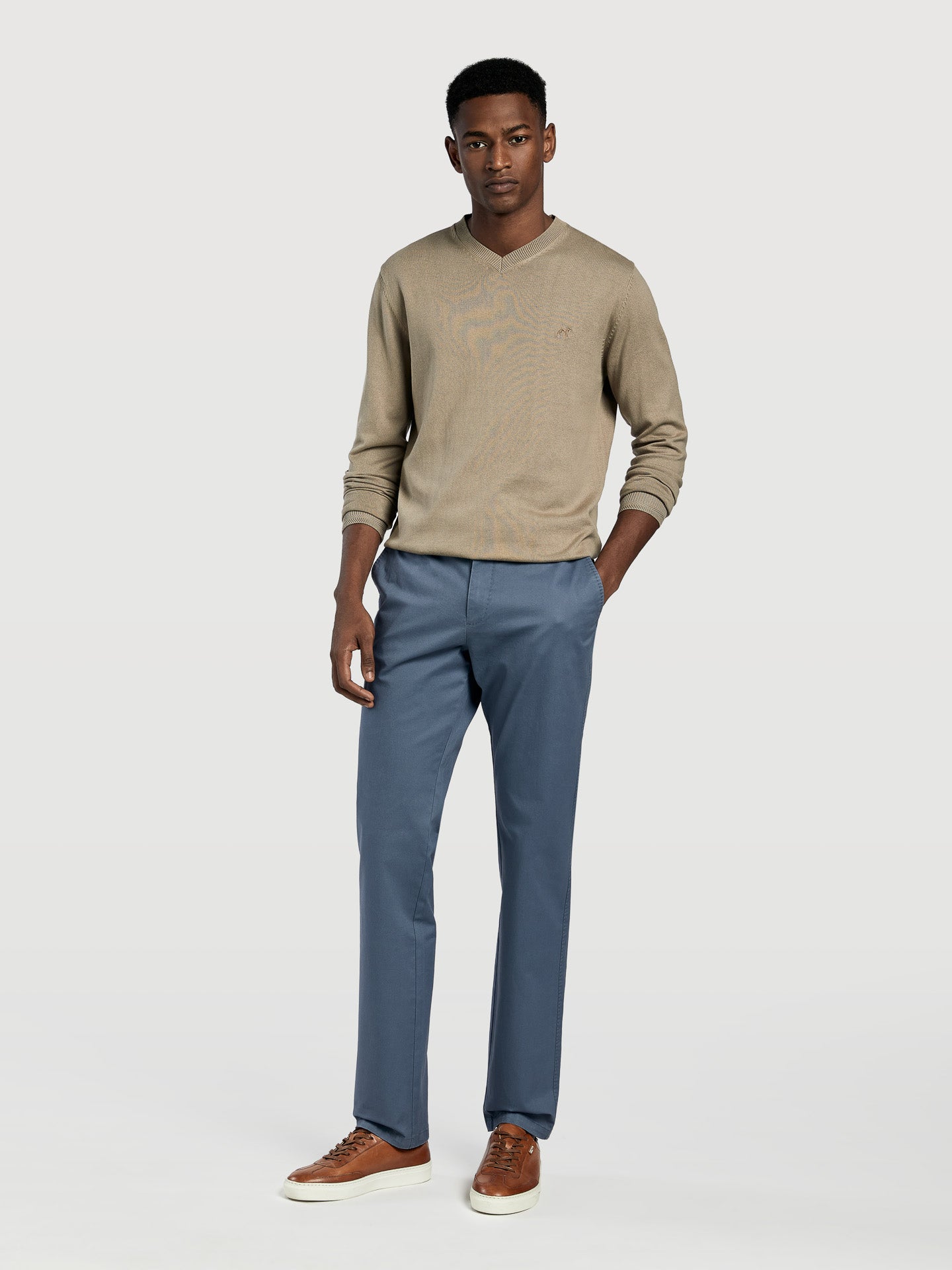 The men's suits from Sacoor Brothers are available with 'Drop 5' and 'Drop 6'. This designation refers to the difference between the blazer size and the trouser size. When ordering a size 46 with 'Drop 5', the trousers will be around size 41, while 'Drop 6' will result in trousers of size 40.