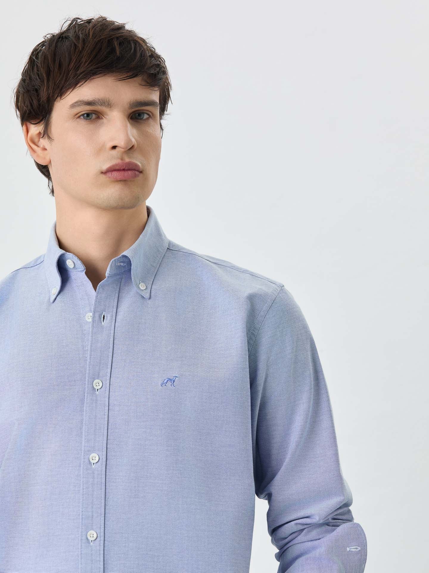 Regular Fit Shirt With Button Down Collar In Cotton-elastane Blend
