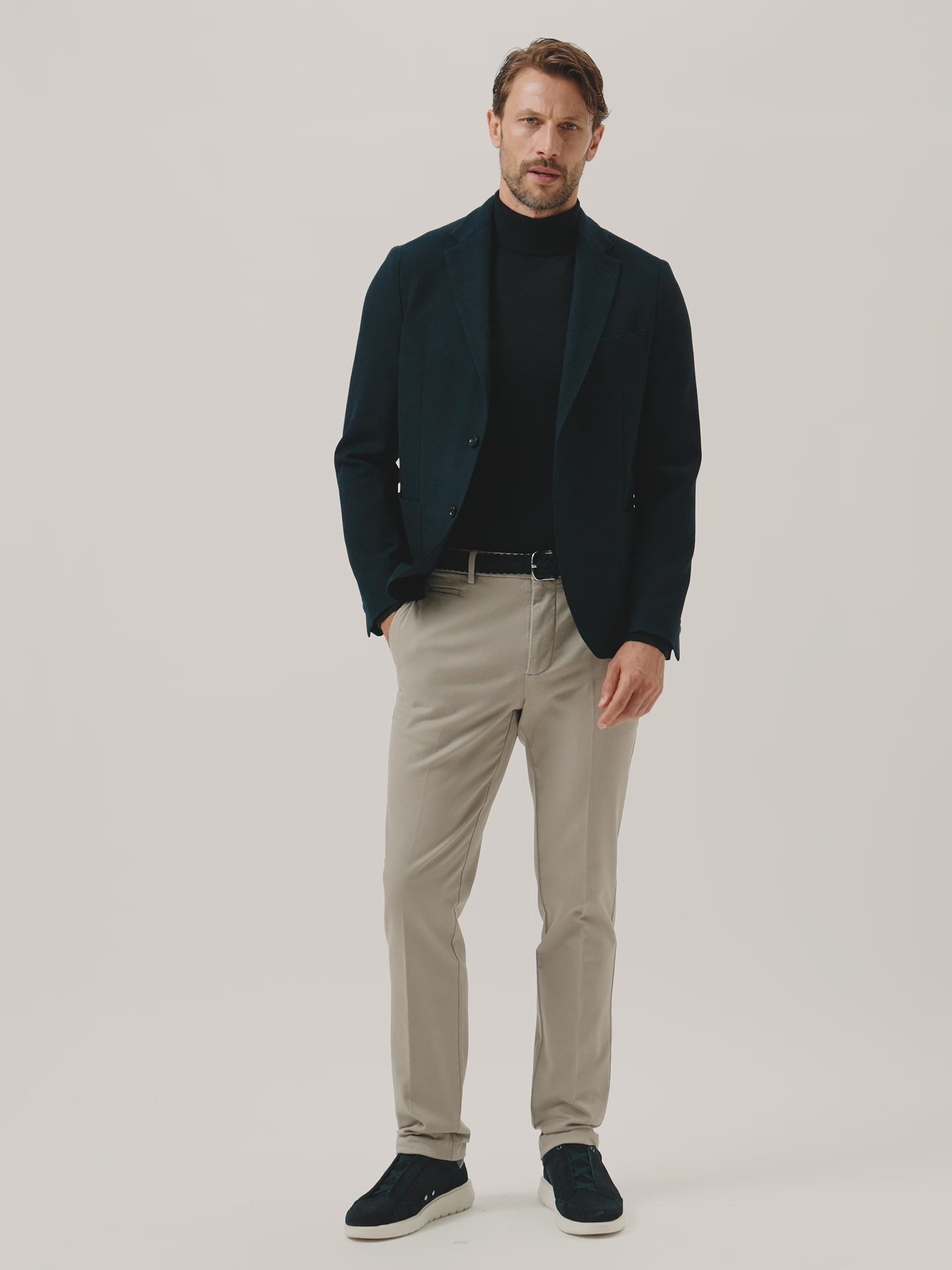 The men's suits from Sacoor Brothers are available with 'Drop 5' and 'Drop 6'. This designation refers to the difference between the blazer size and the trouser size. When ordering a size 46 with 'Drop 5', the trousers will be around size 41, while 'Drop 6' will result in trousers of size 40.