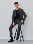The men's suits from Sacoor Brothers are available with 'Drop 5' and 'Drop 6'. This designation refers to the difference between the blazer size and the trouser size. When ordering a size 46 with 'Drop 5', the trousers will be around size 41, while 'Drop 6' will result in trousers of size 40.