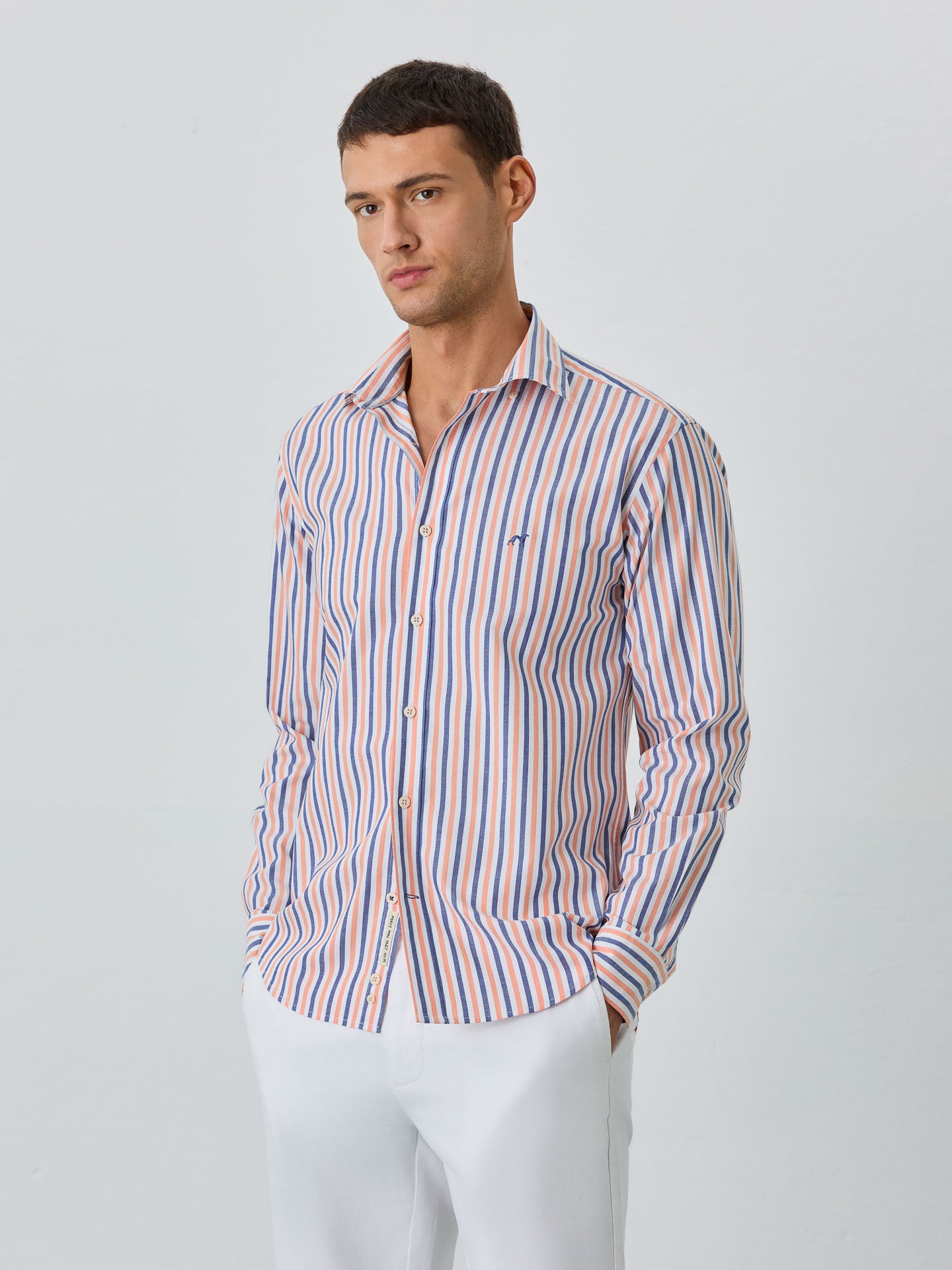 Slim Fit Shirt With Button Down Collar In BCI Cotton With Stripes
