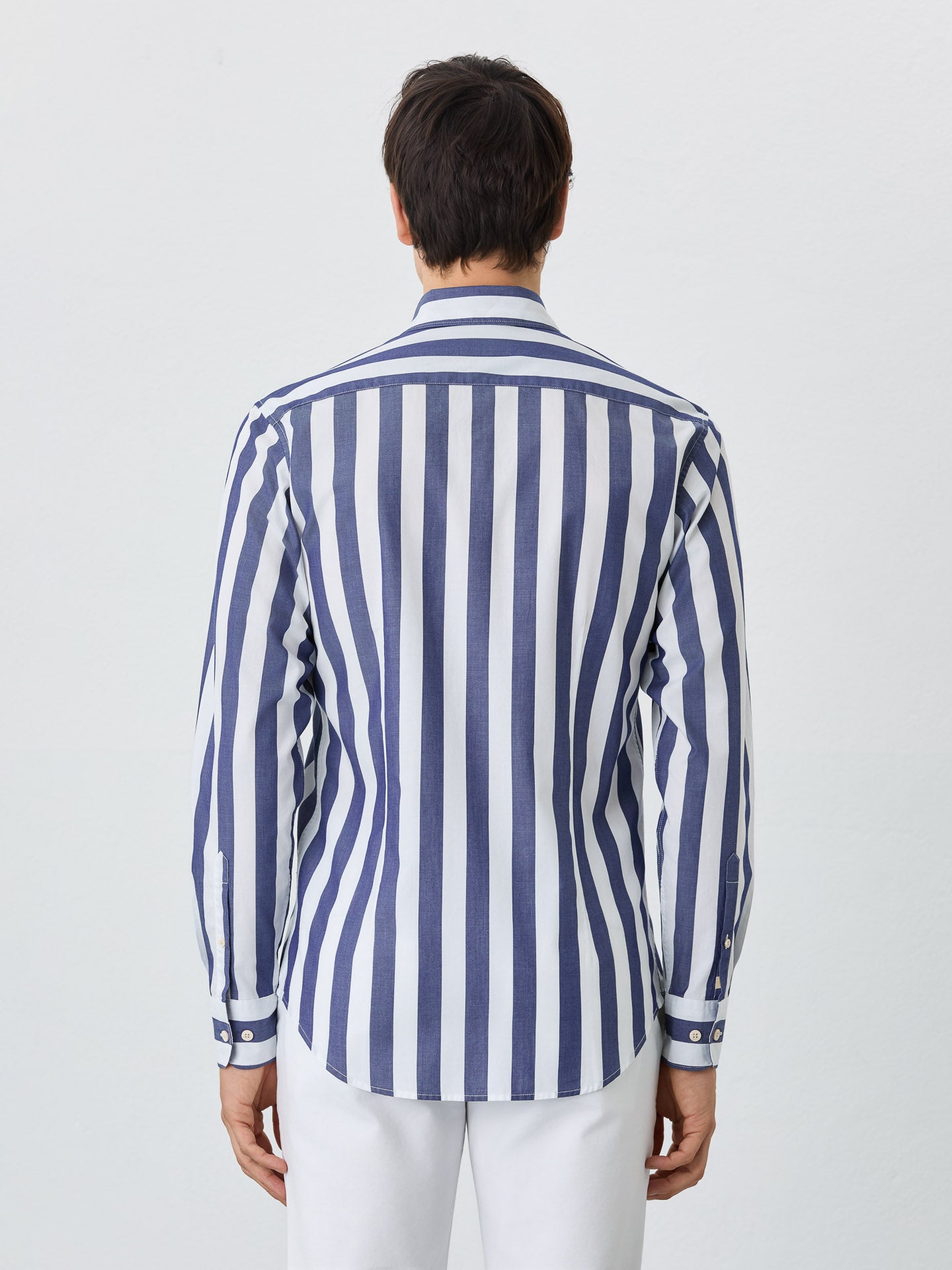 Slim Fit Shirt With Open Collar In BCI Cotton With Stripes