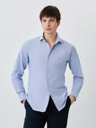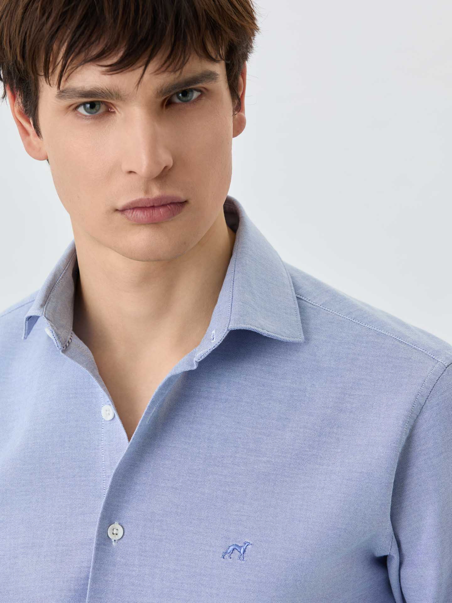 Slim Fit Shirt With Open Collar in Cotton-elastane Blend