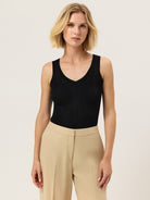 V-Neck Rib Top In Viscose blend With Pointelle Detail